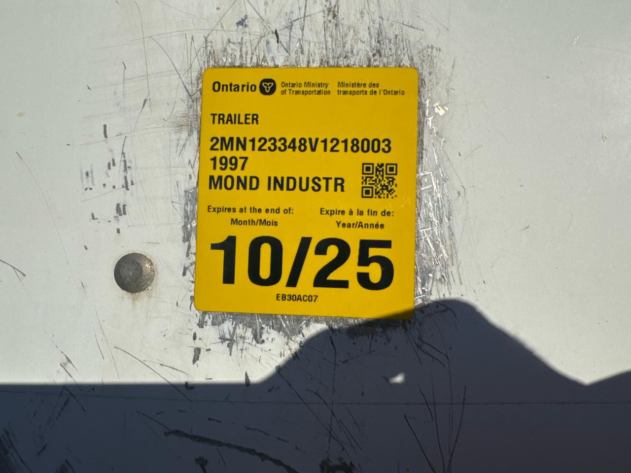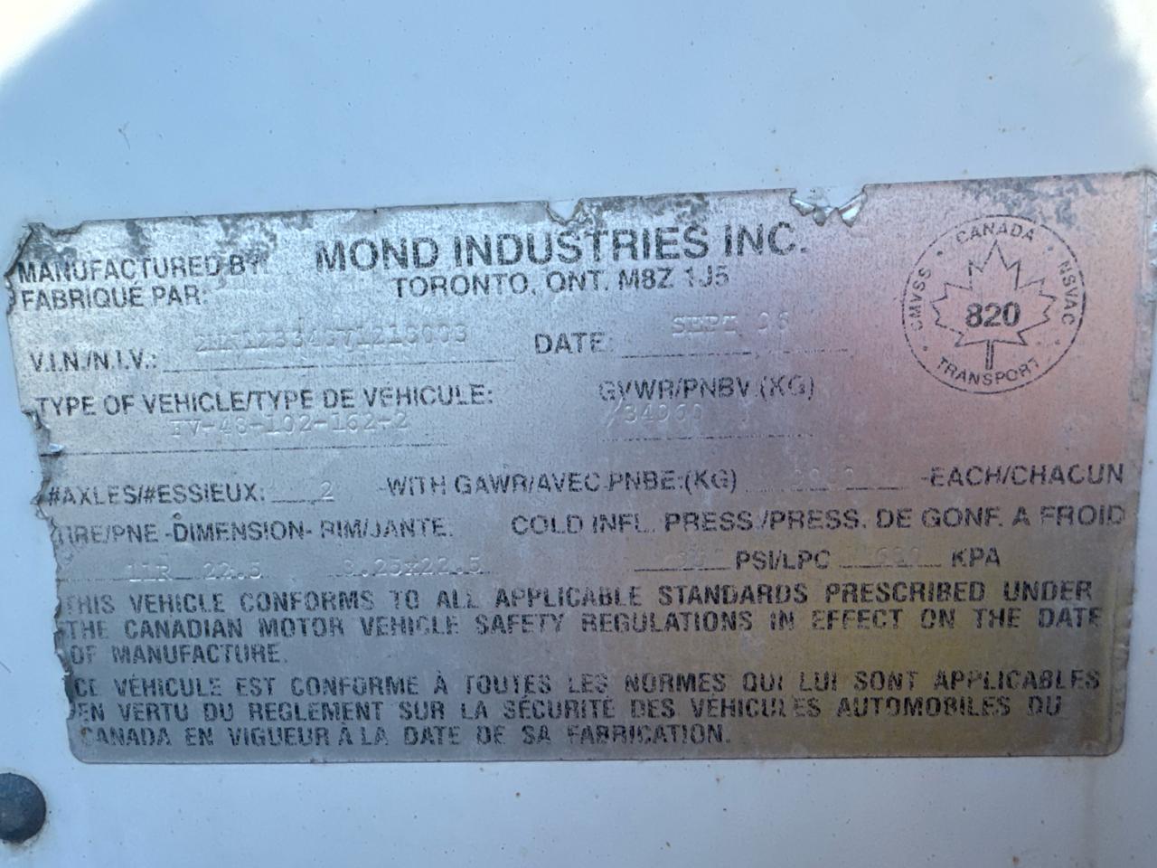 Mond Dry Van Trailer, 48 feet, T/A, Mod. FV-48-102-162-2, VIN 2MN123348V1218003, Roll up door (1996)