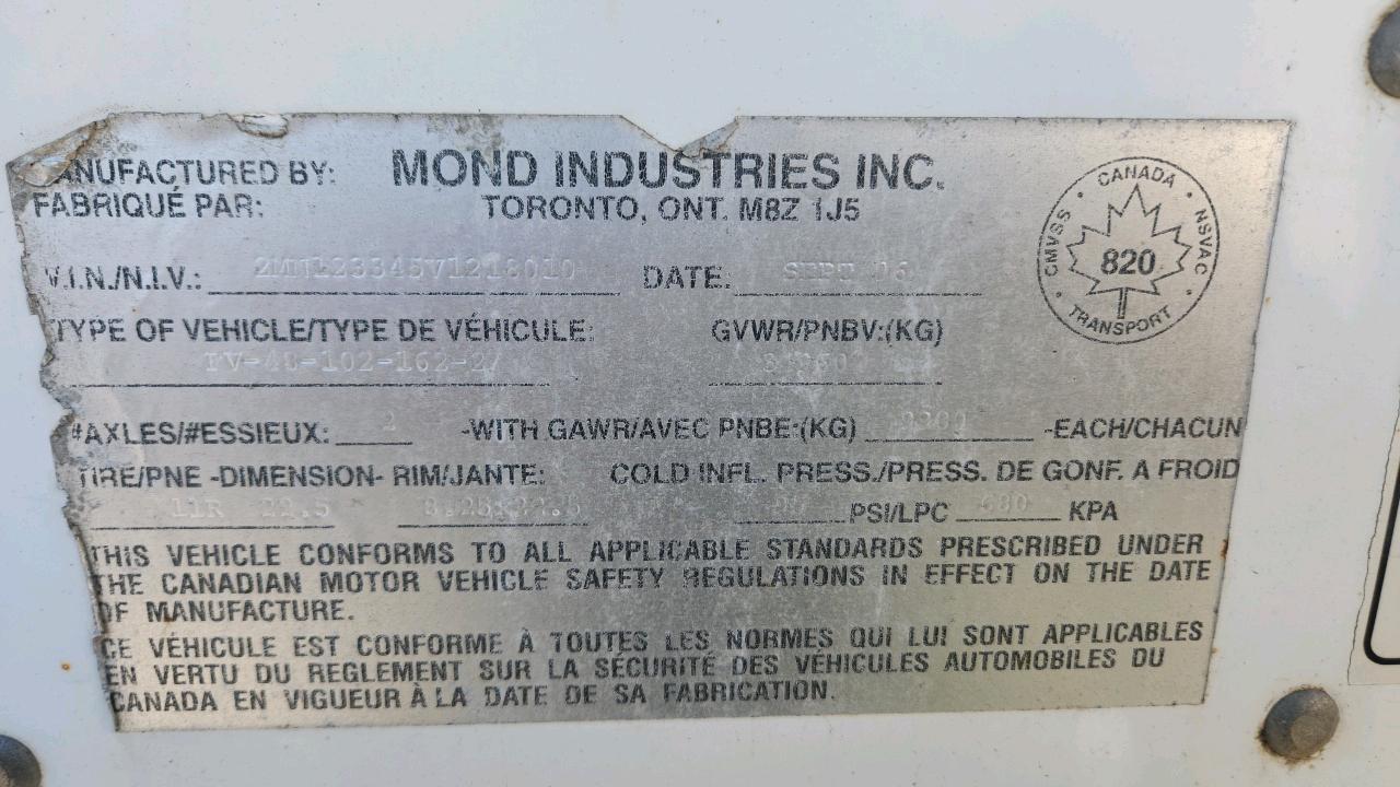 Mond Dry Van Trailer, 48 feet, T/A, Mod. FV-48-102-162-2, VIN.2MN123345V1218010, Roll up door, (1996), Delivery