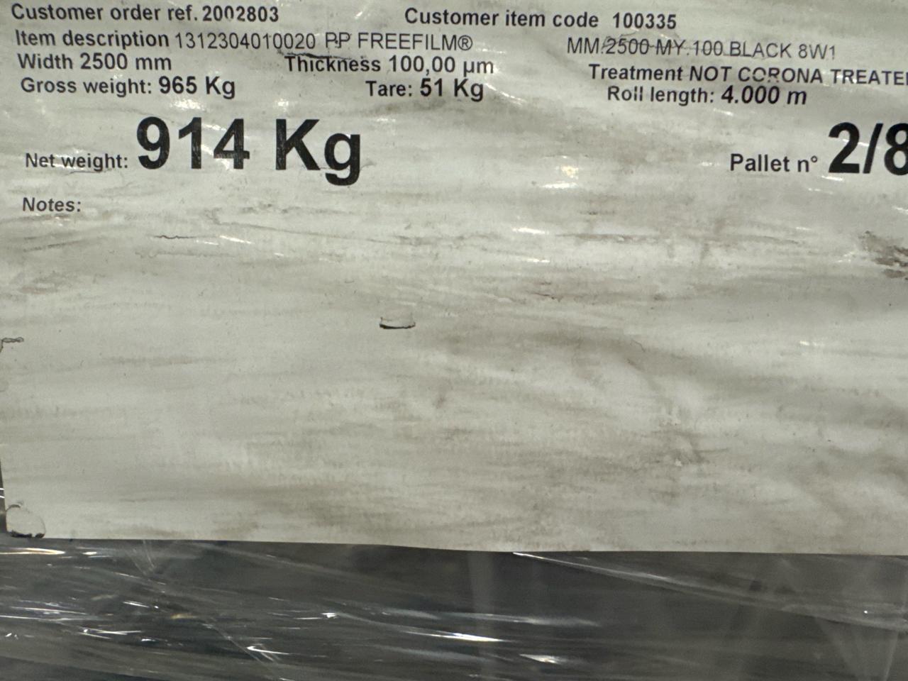(34 rolls x 4000 m = approx. 136000 m) MG fleece, mod. PP Freefilm MM2500MY 100 Black 8W1, width 2500 mm, thickness 100 um [Loc. Cambridge]