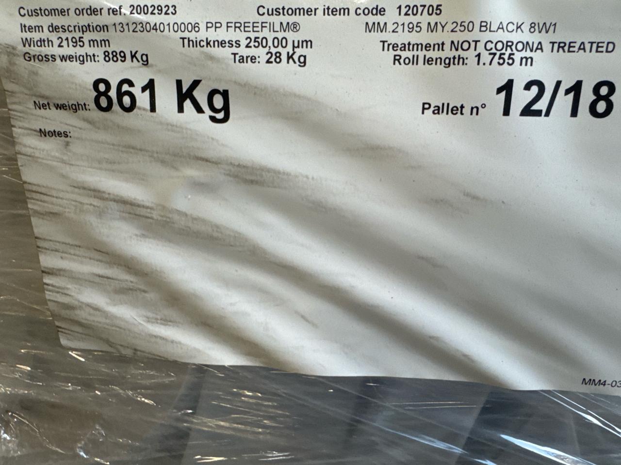 (7 rolls x 1755 m = approx. 12285 m) MG fleece, mod. PP Freefilm MM2500MY 250 Black 8W1, width 2195 mm, thickness 250 um [Loc. Cambridge]