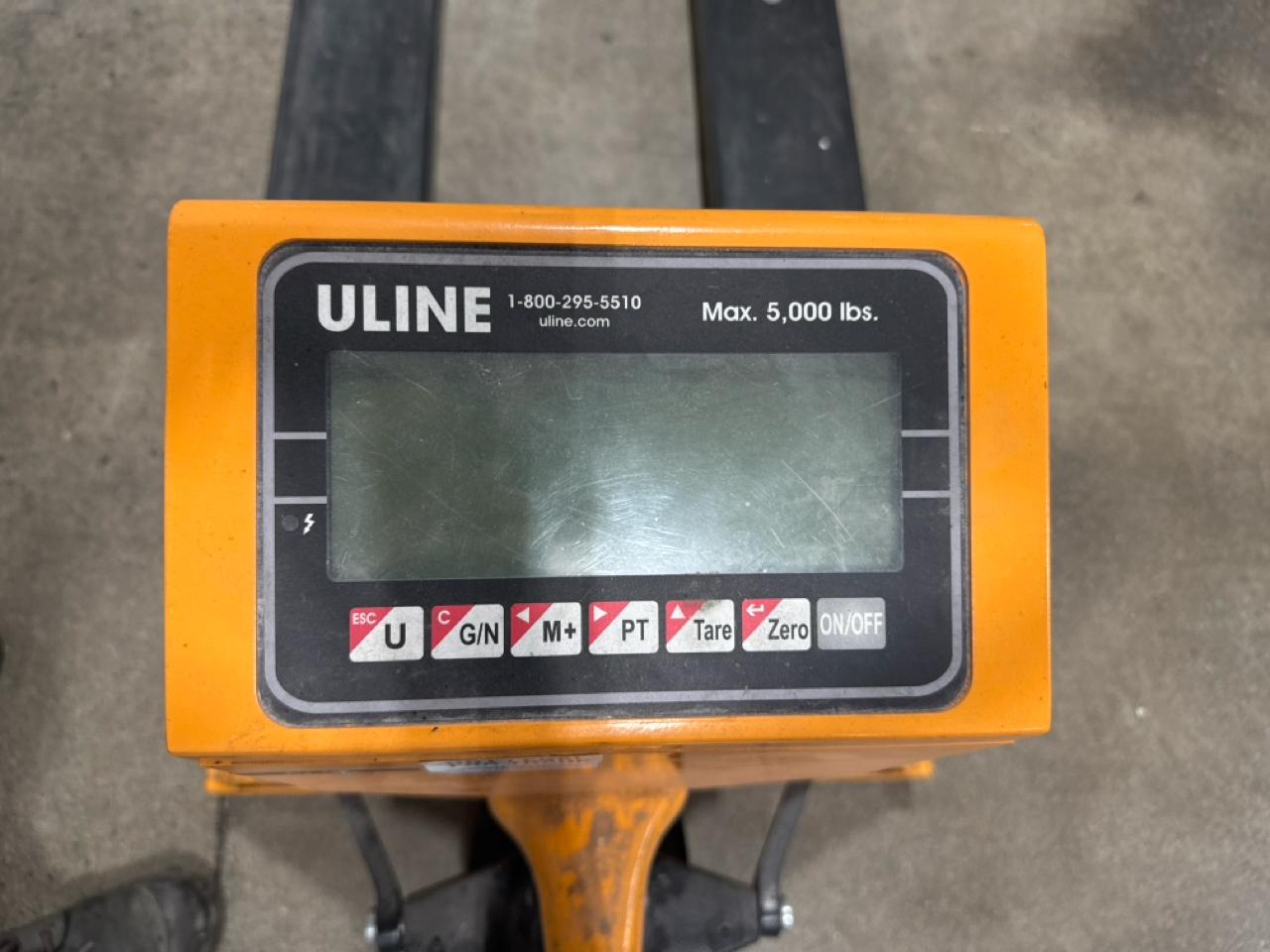 Uline pallet truck, mod. H-1679, 5000 lbs. cap. w/ integrate digital scale