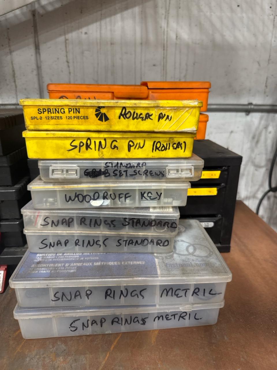 misc. snap rings, spring pins, O-rings, washers, etc.