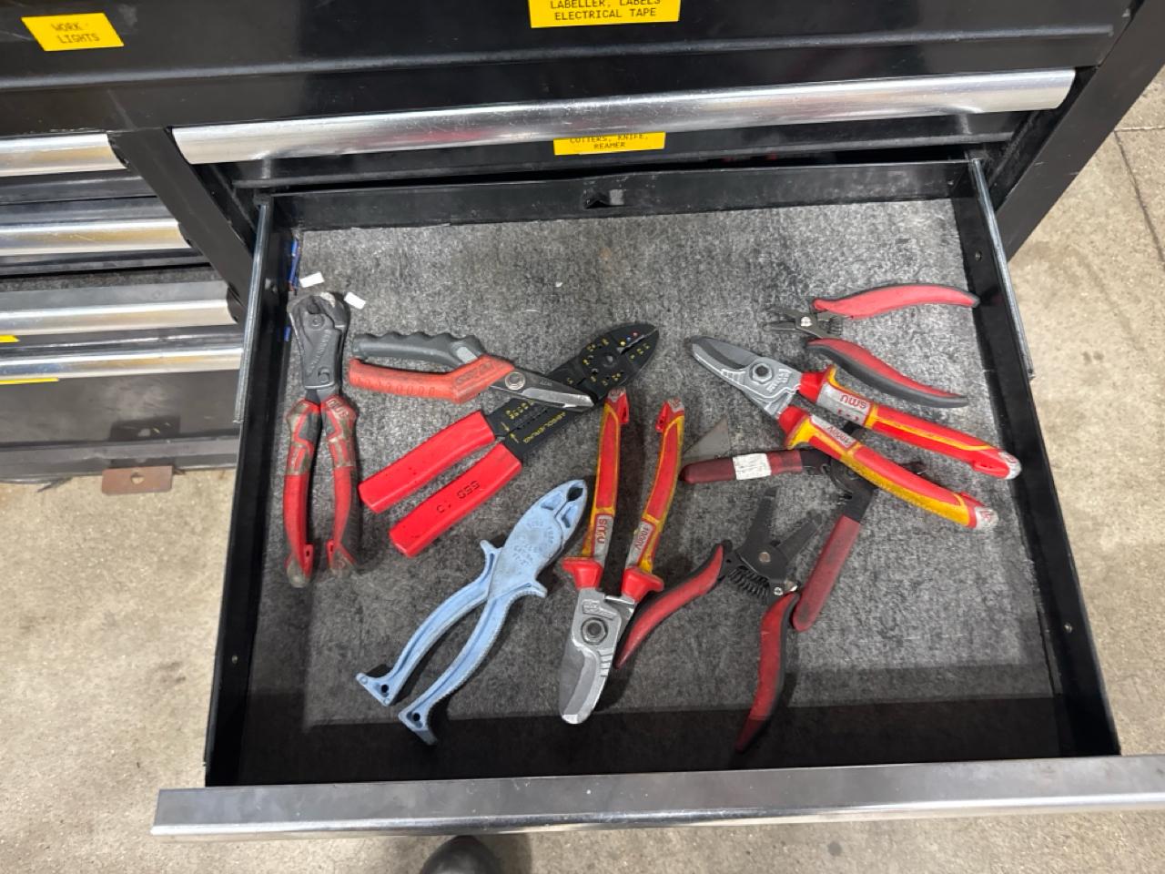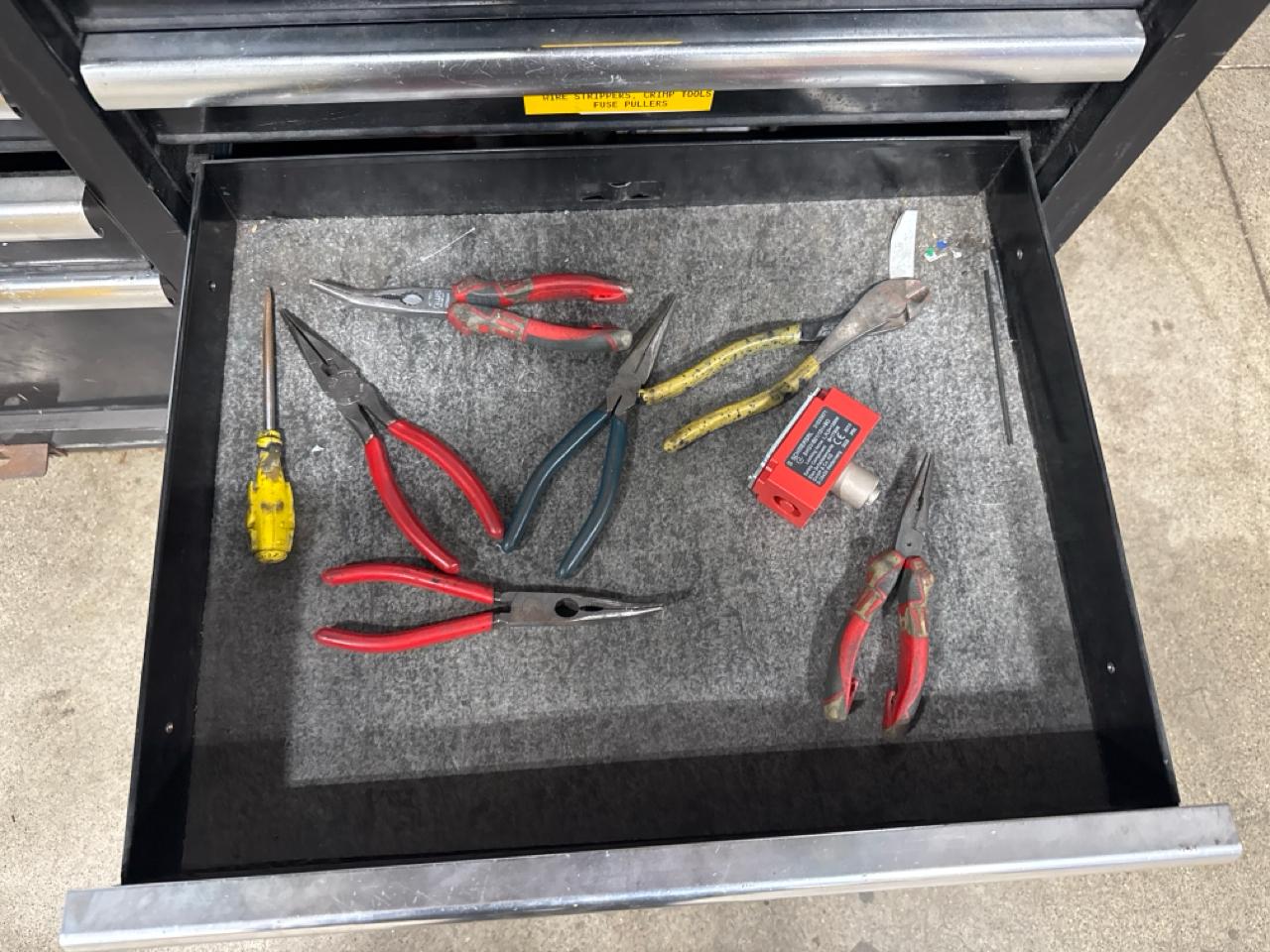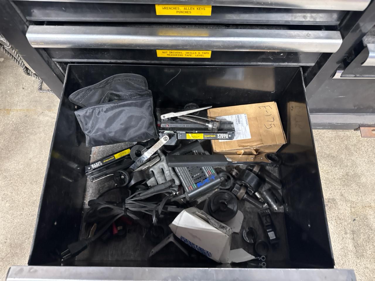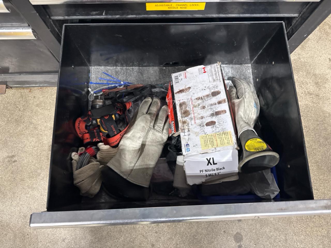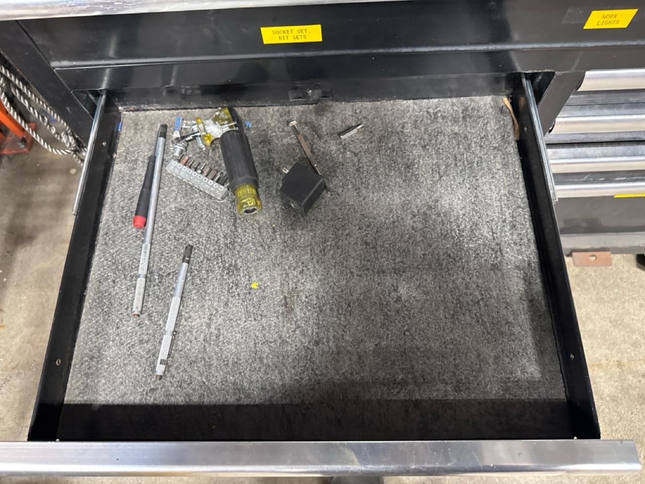 Husky mobile work bench w/ butcher block top c/w contents (no key)