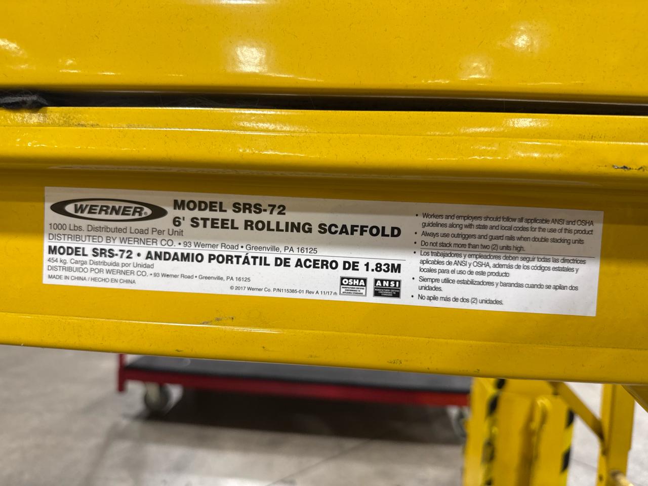 Werner steel rolling scaffolding, mod. SRS-72, 6 ft., 454 kg cap.