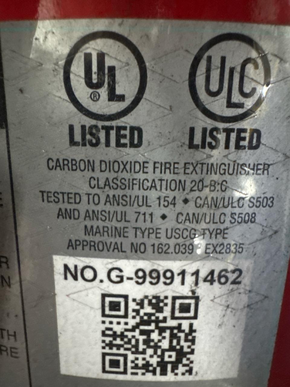 Amerex carbon dioxide fire extinguisher, mod. 333, Class 20 B, C, mobile