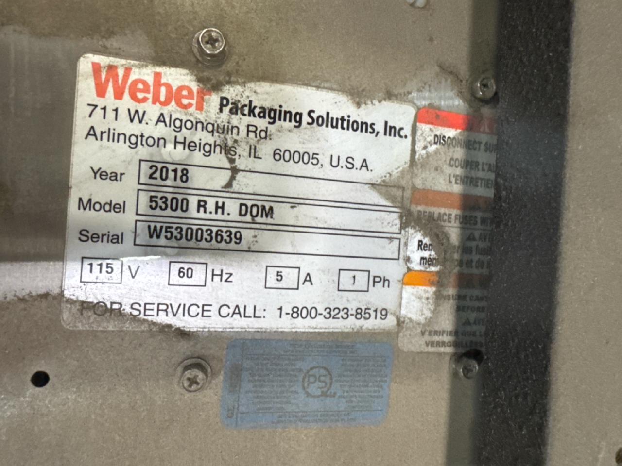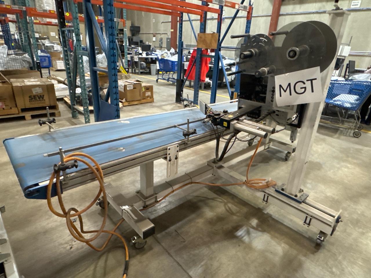 Weber labeler, mod. 5300 R.H. DOM, ser. no. W53003639 w/ belt conveyor, 24 in. x 12 ft., 0.15 kw, mobile (may require repair)