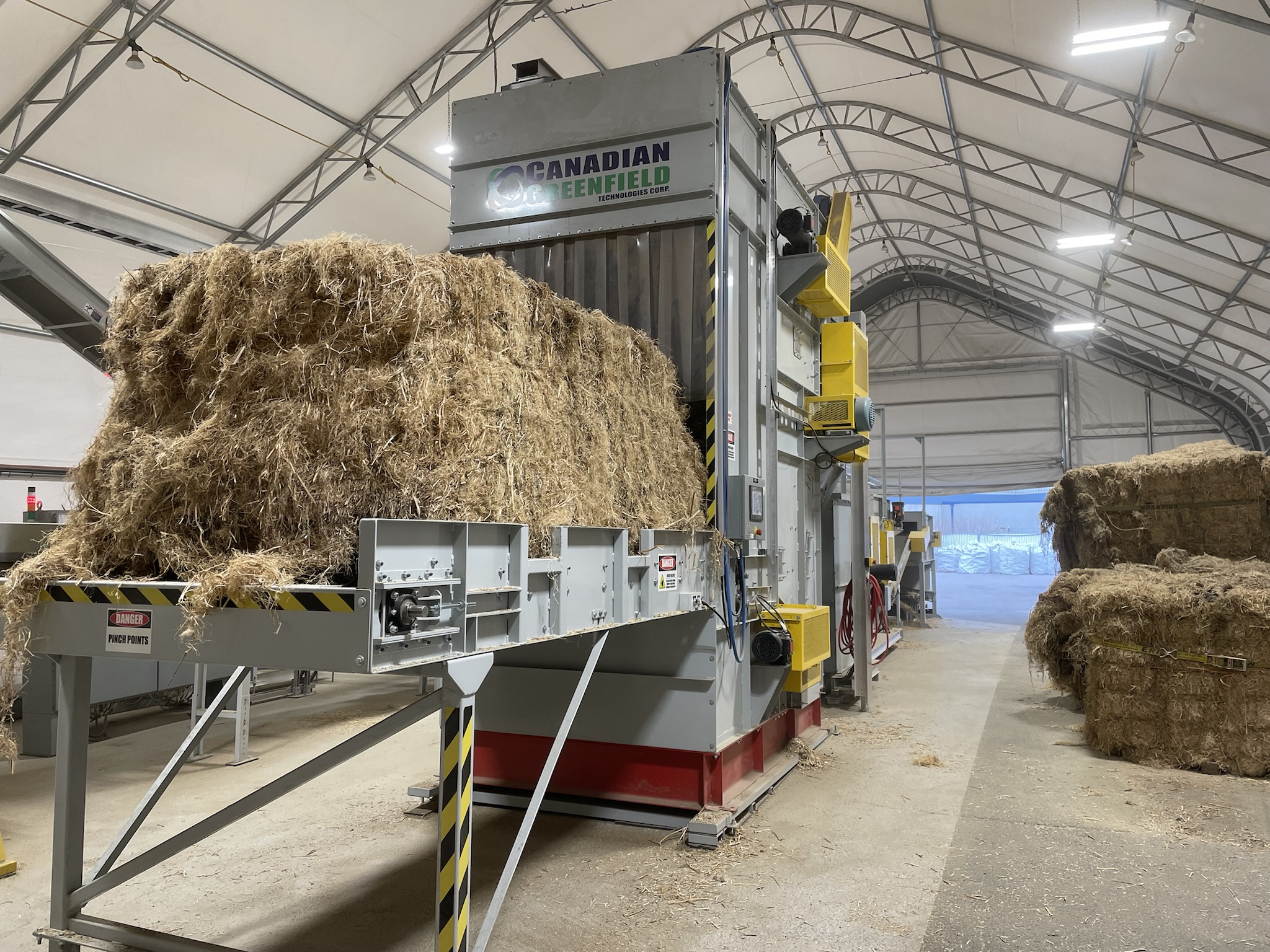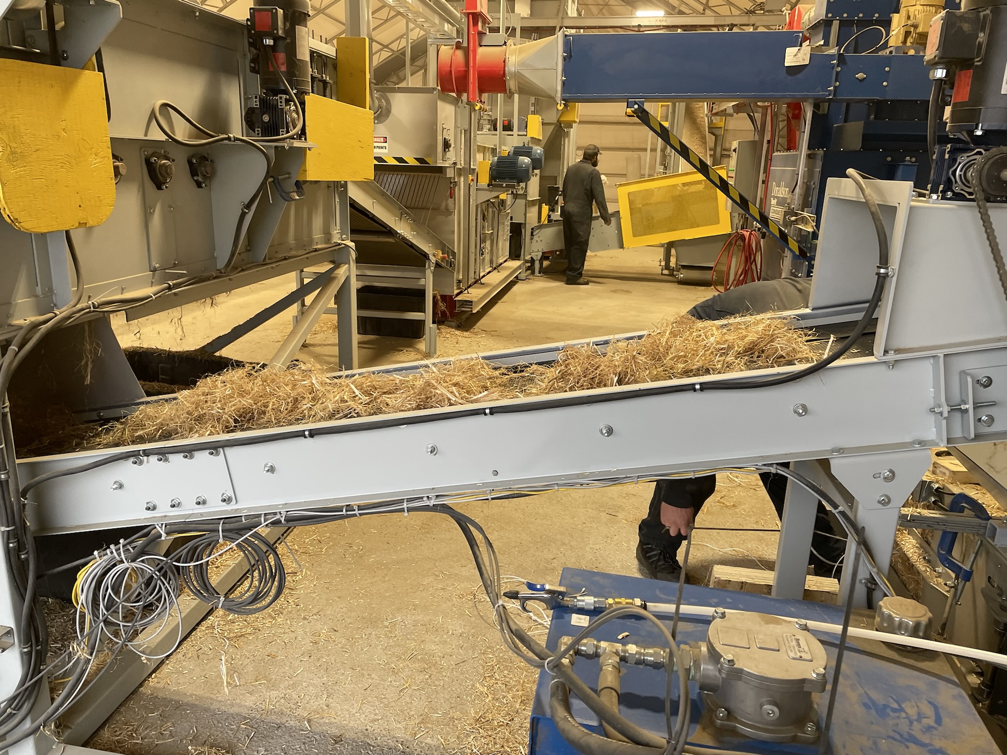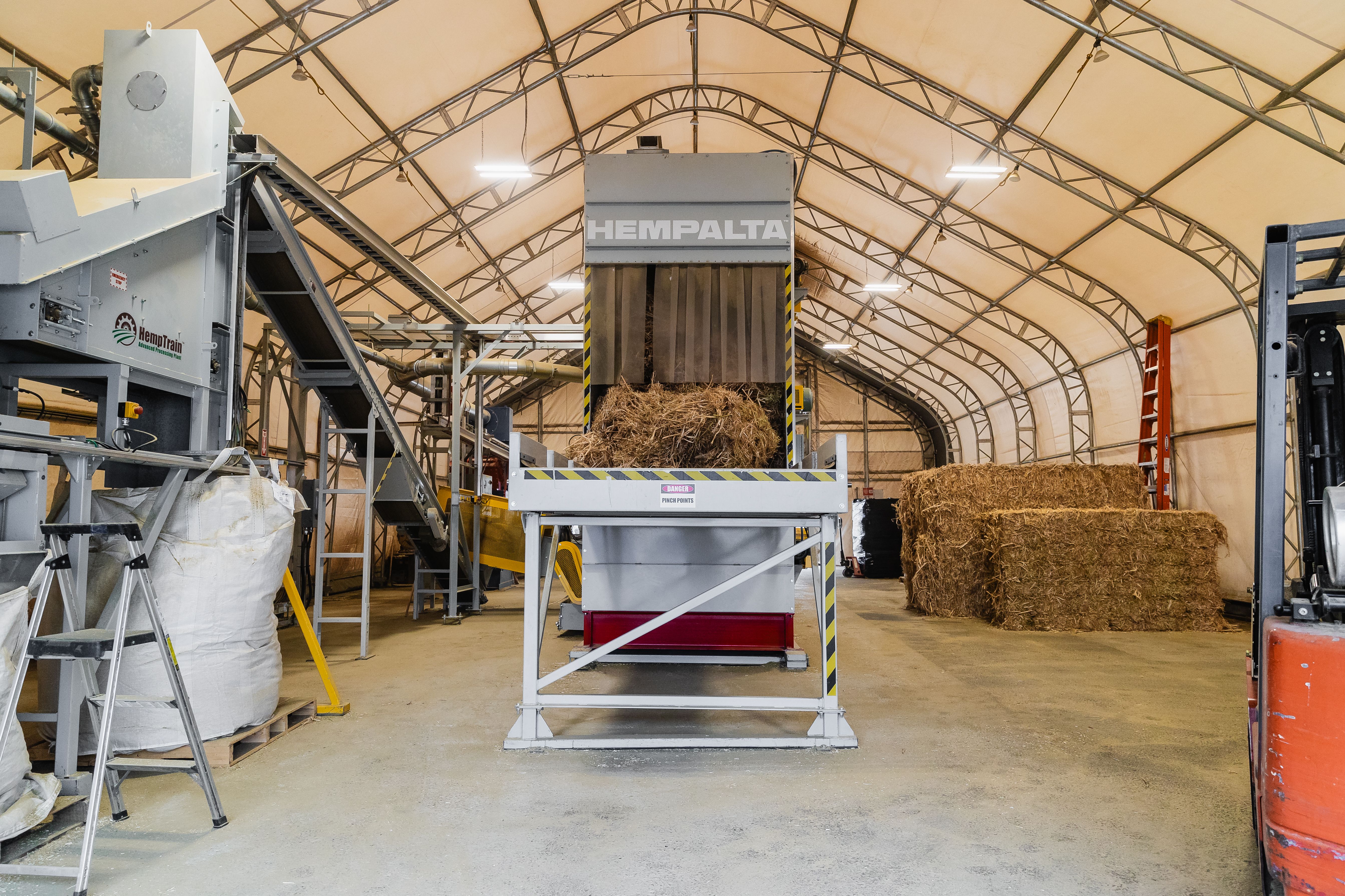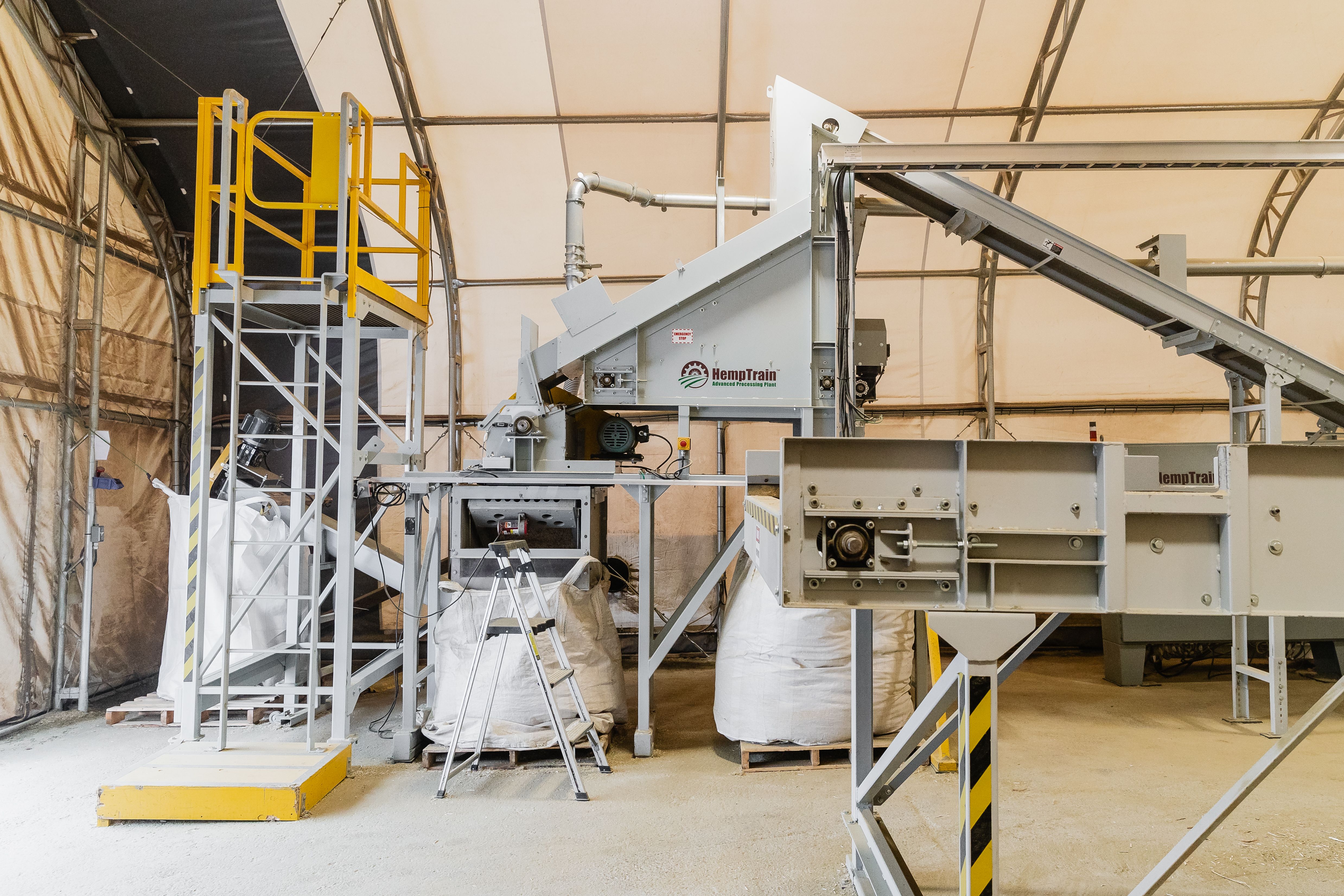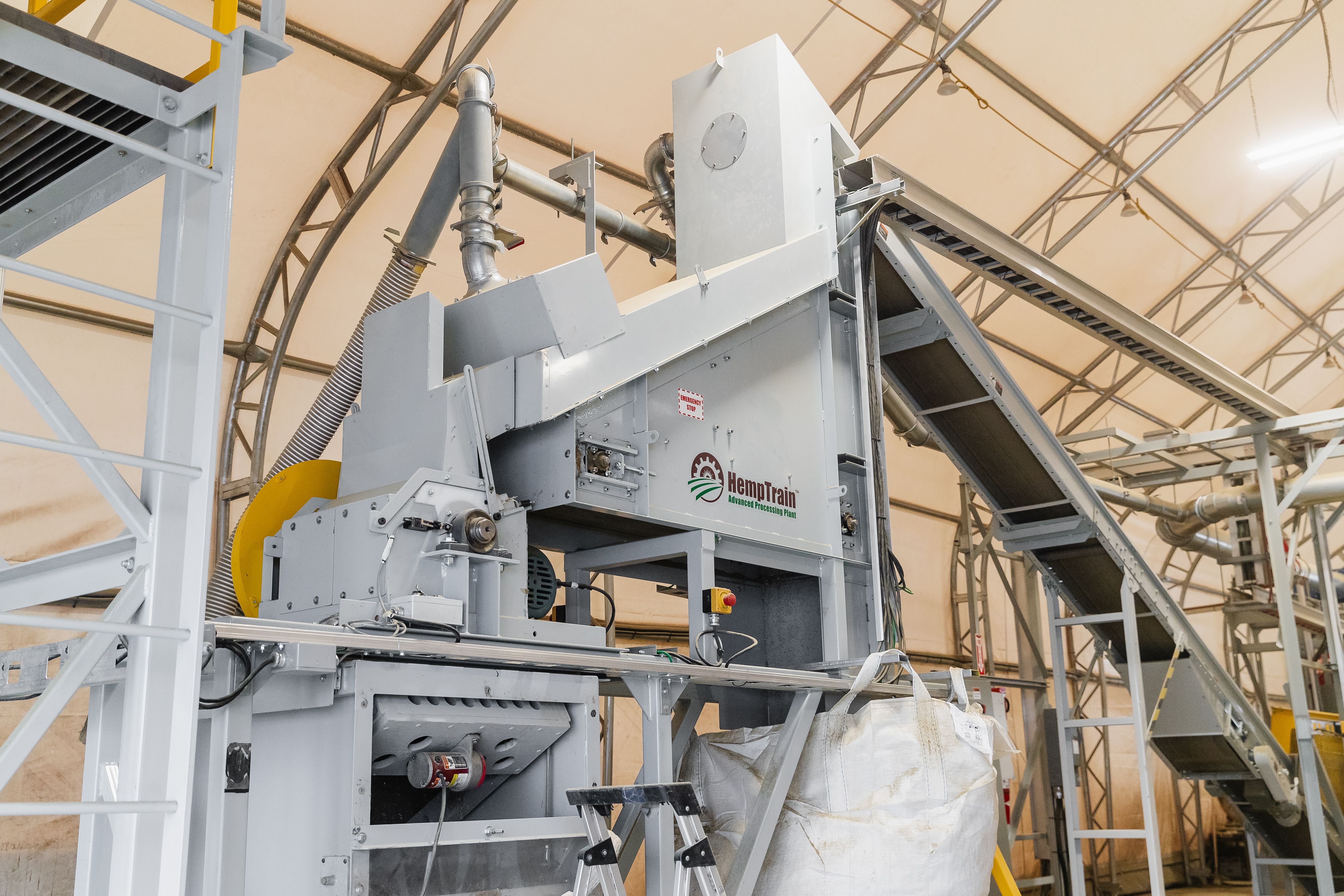 HT-UF Model HempTrain Advanced Processing Plant (with Fiber Cleaner, Additives Dispenser, Hurd Cleaner, Hurd Refiner/Sizer, Explosion Protection Controlled Dust Control Unit), Pallet Jack, Heavy Duty Compressor, Floor Pallet Scale