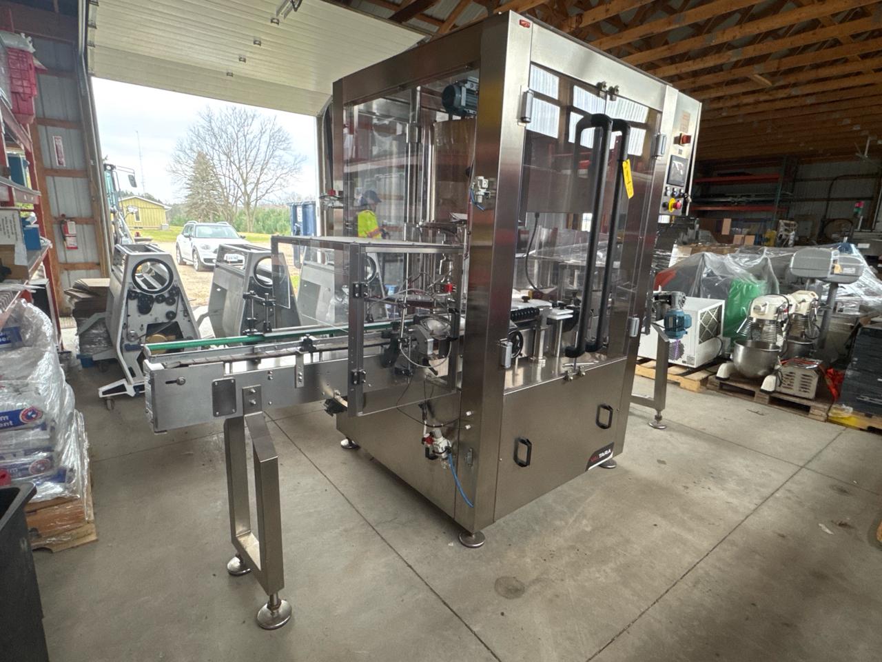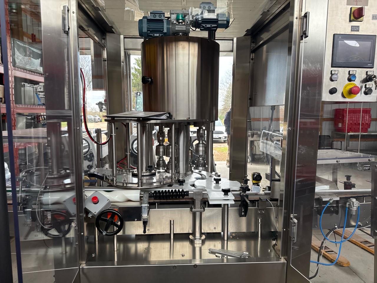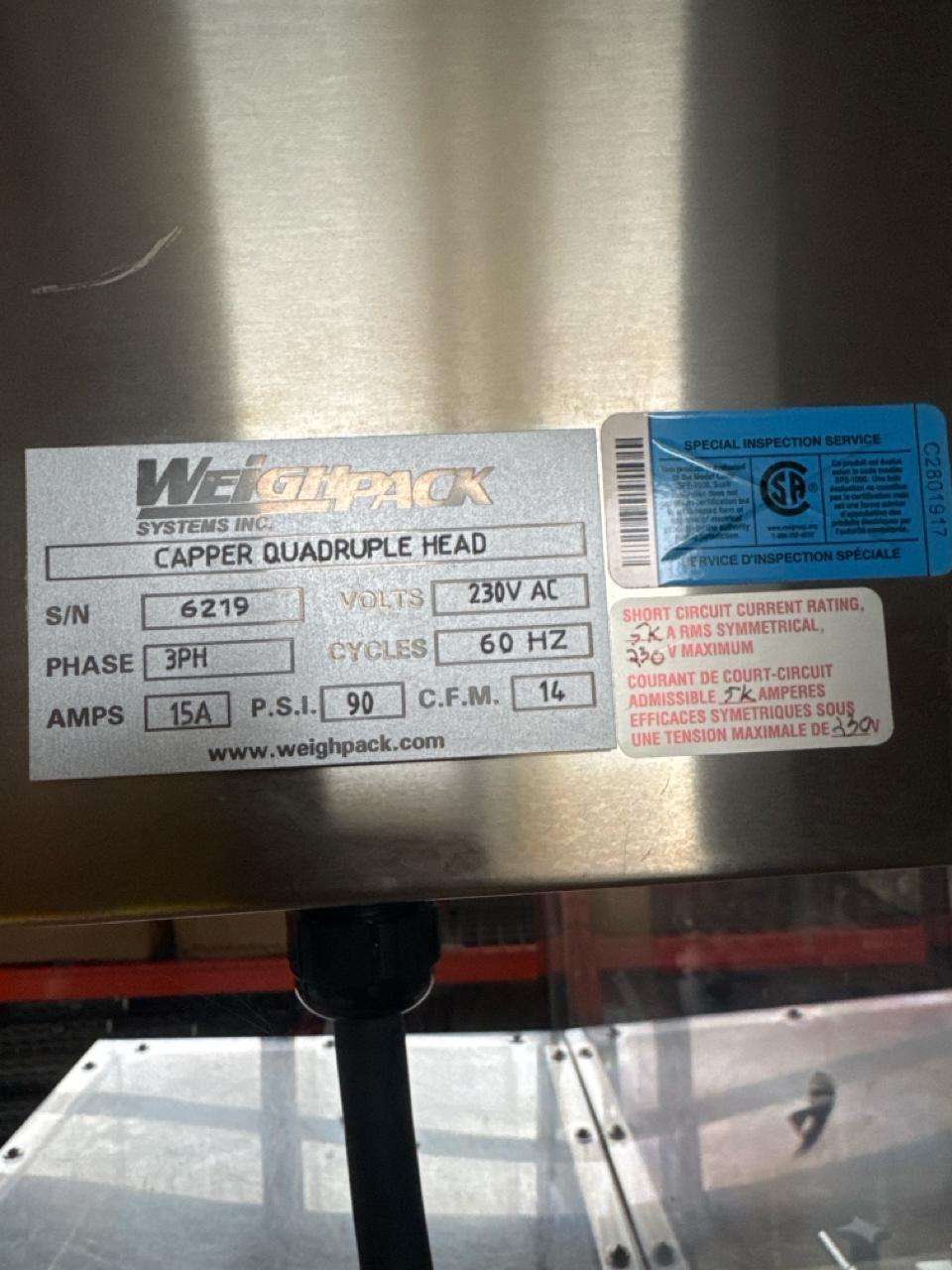 Paxion/WeighPack VALTARA Rotary Capper, mod. T4VP, ser. no. 6219, 4-head, stainless steel, 4.5 in. x 10 ft. power belt conveyor, Omron touch screen HMI [Loc. Barn - Main Plant]