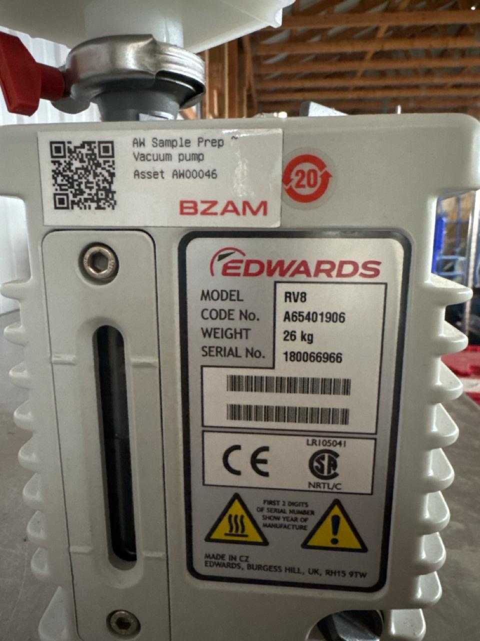 Edwards Dual-Stage Rotary Vane Vacuum Pump, mod. RV8, ser. no. 180066966 [Loc. Barn - Main Plant]