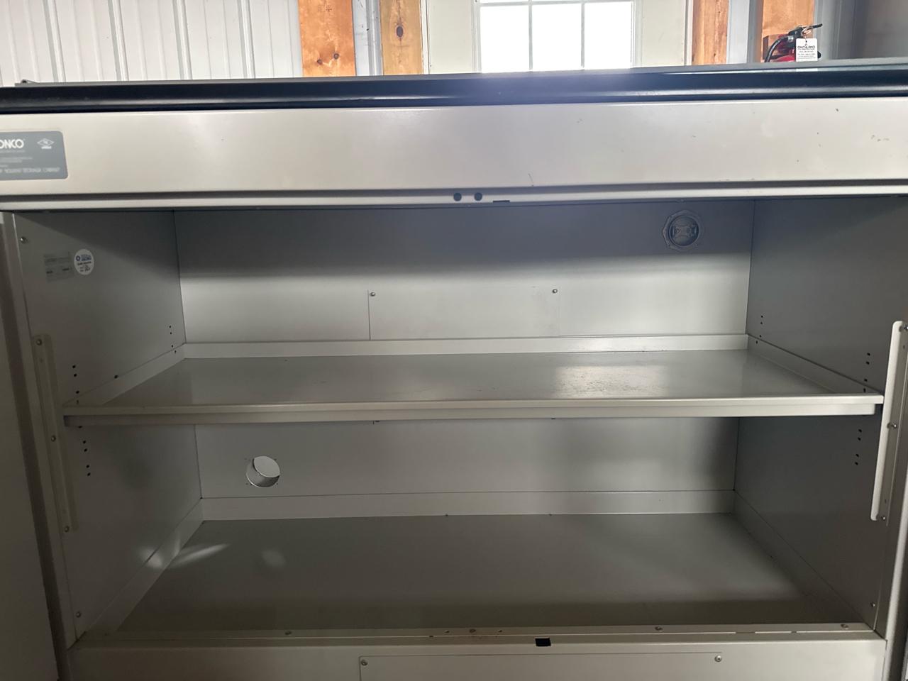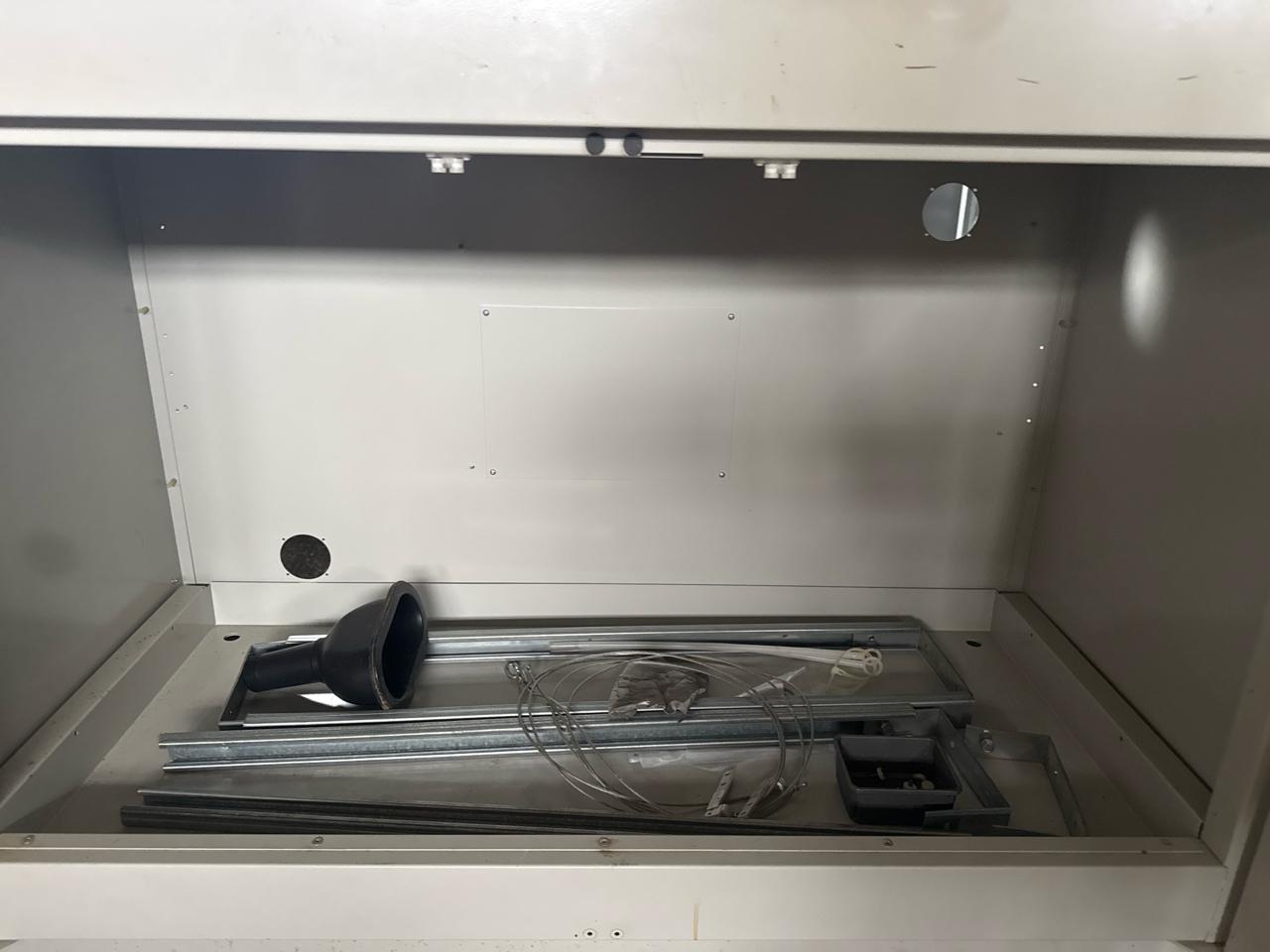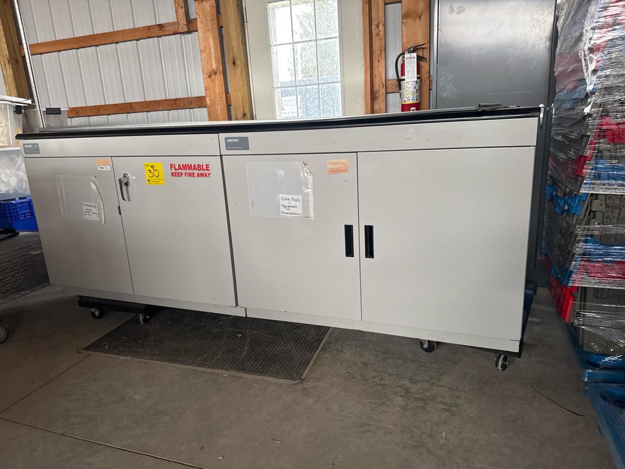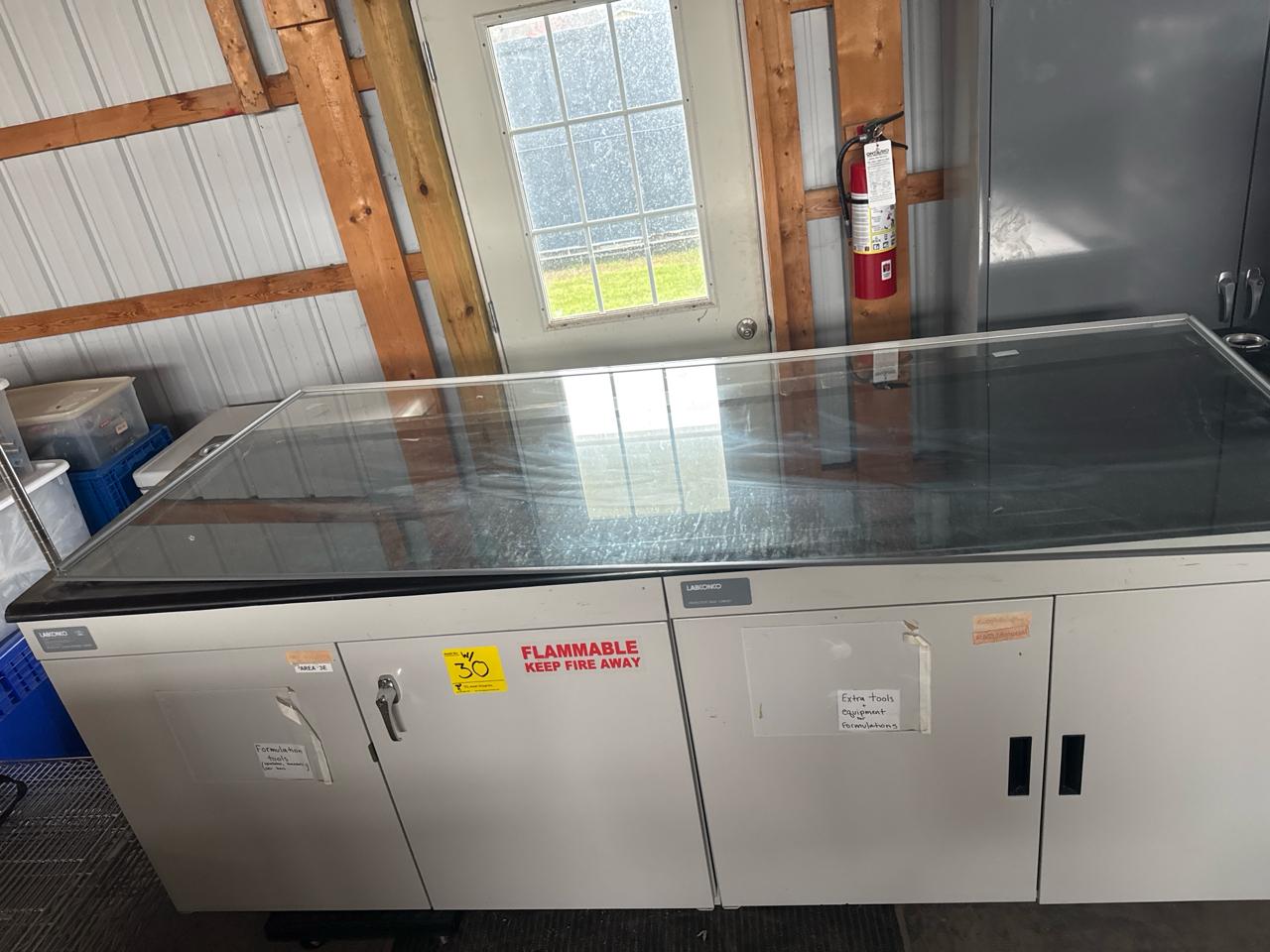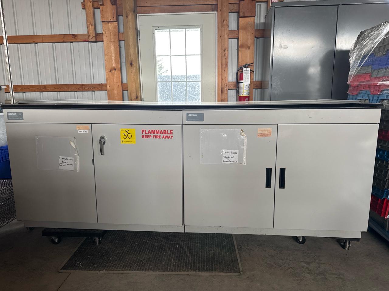 Labconco Protector Chemical Fume Hood, mod. 1008000010814, ser. no. 161032975, approx. 7 ft. w/ Guardian Air-Flow Monitor c/w base cabinet and chemical storage cabinet (disassembled) [Loc. Barn - Main Plant]