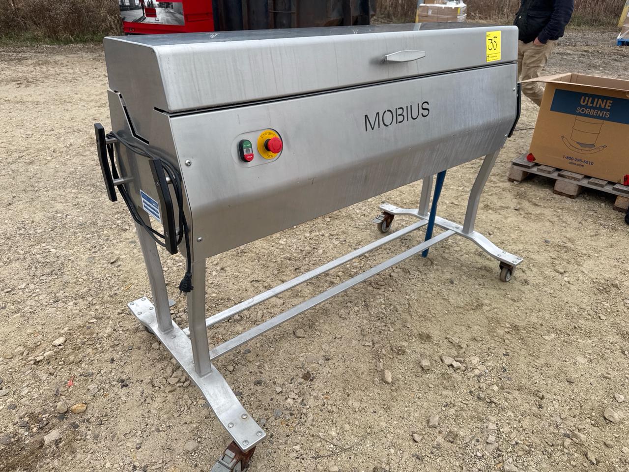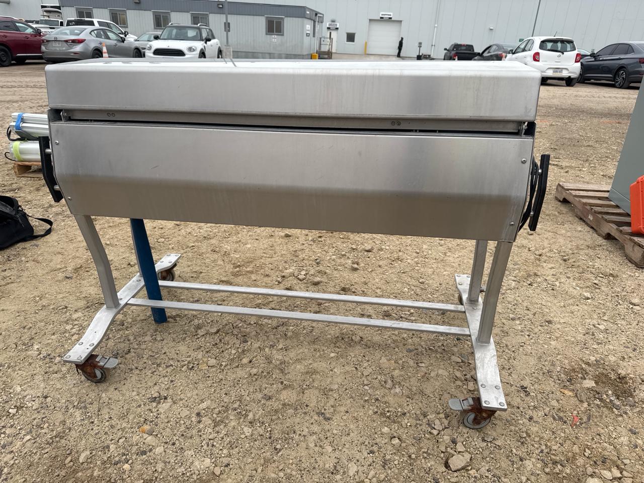 Mobius Tumbler and Brush Washer, ser. no. 000000118, stainless steel, mobile [Loc. Sea Containers - Main Plant]