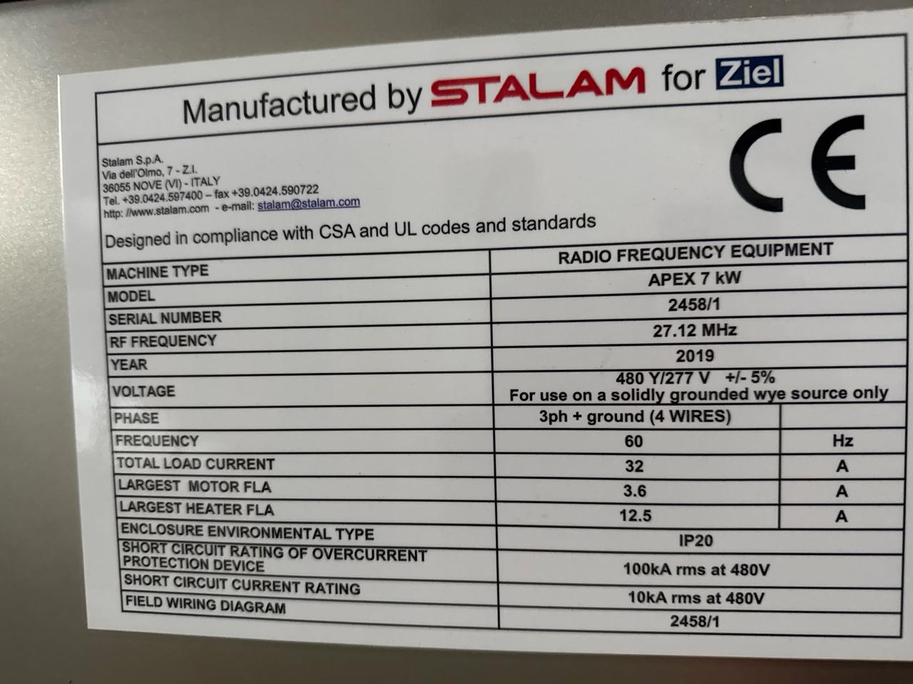 Stalam/Zeil Radio Frequency Dryer, mod. Apex 7 kW, ser. no. 2458/1 (2019), Siemens Simatic HMI Touch Interface, stainless steel [Loc. Warehouse 1 - Brantford]