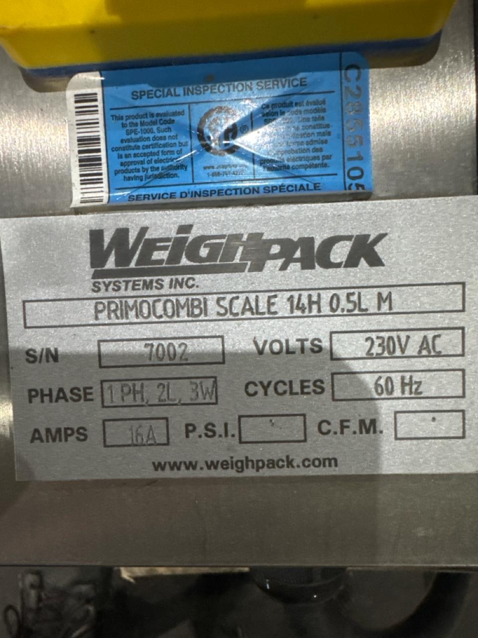 NEW WeighPack Multi-Head Scale, mod. PrimoCombi Scale 14H 0.5L M, ser. no. 7002, stainless steel w/ control panel c/w PRE-Cheq Analyzer 64 CU-IN, stainless steel w/ touch screen control c/w Mezzanine, stainless steel c/w stairs, etc.(taged as 54), c/w accessories [Loc. Warehouse 1 - Brantford]