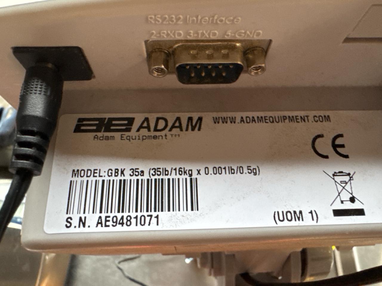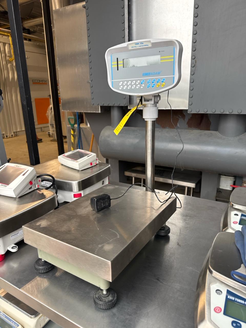 AE Adam digital bench scale, mod. GBK70A, ser. no. AE9481071, 70 lbs. - 0.002 lbs. cap.., 11.5 in. x 15.5 in. stainless steel platform [Loc. Sea Containers - Main Plant]