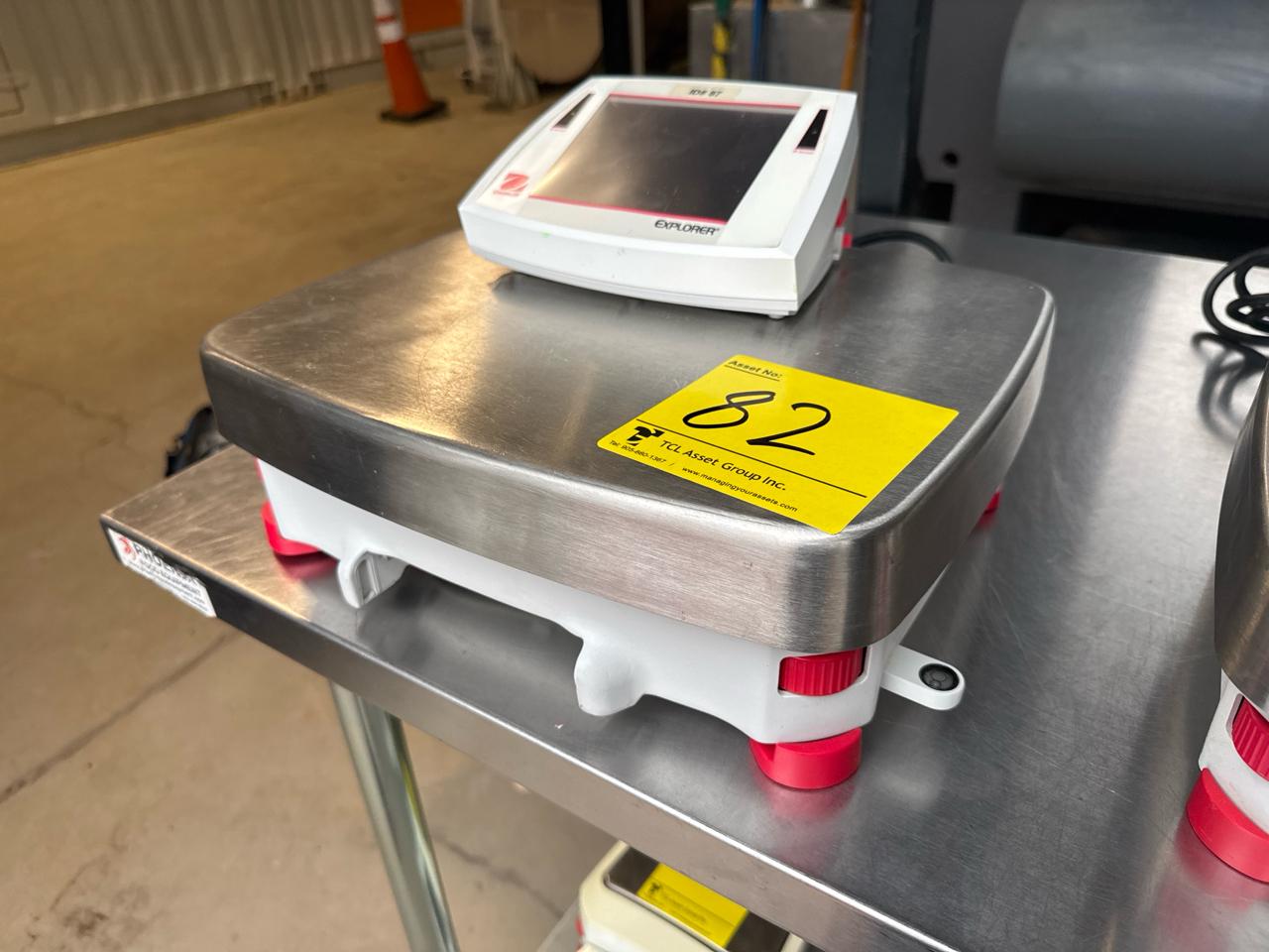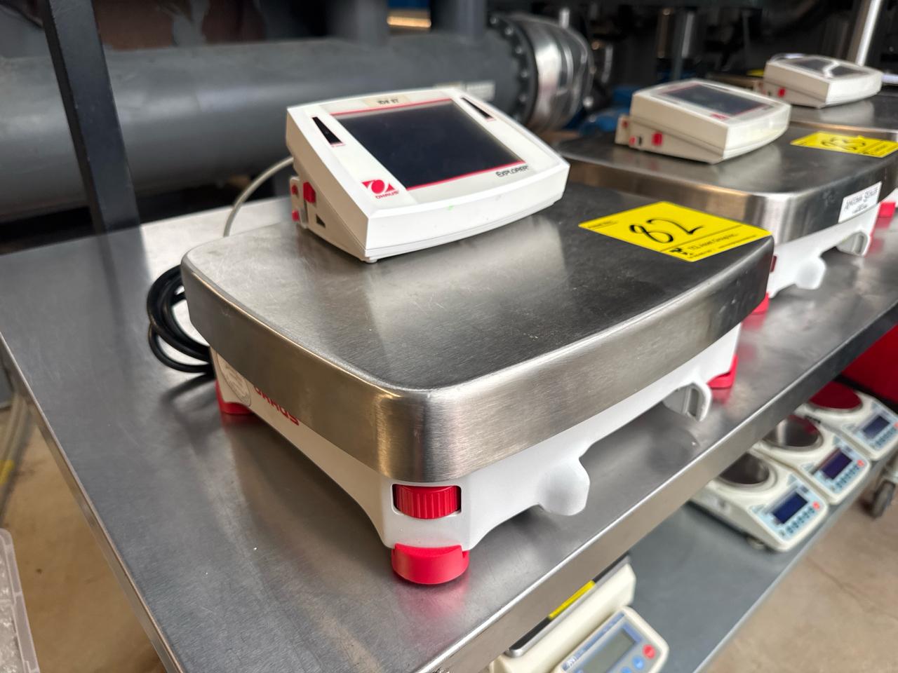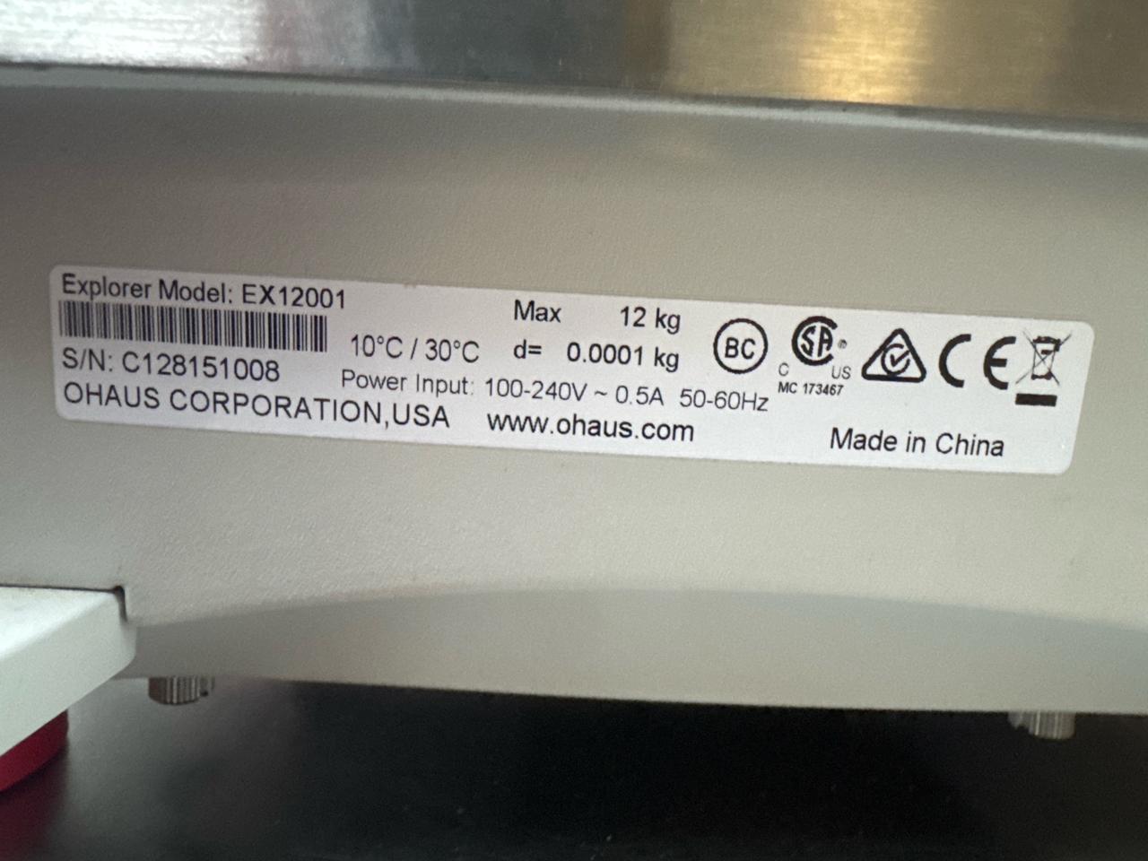 Ohaus Explorer digital bench scale, mod. EX12001, 12 kg - 0.0001 kg cap., 12 in. x 14.5 in. stainless steel platform [Loc. Sea Containers - Main Plant]