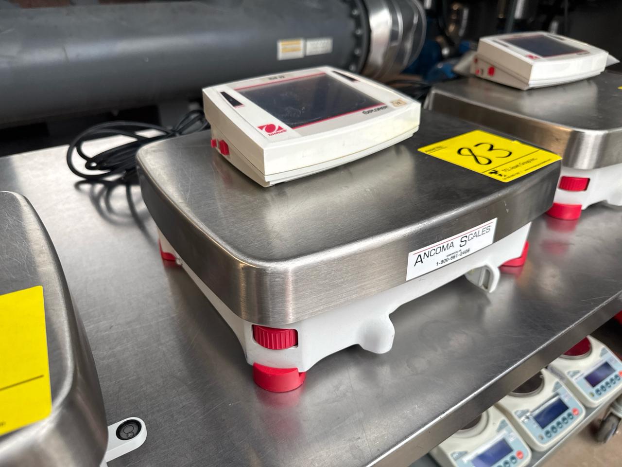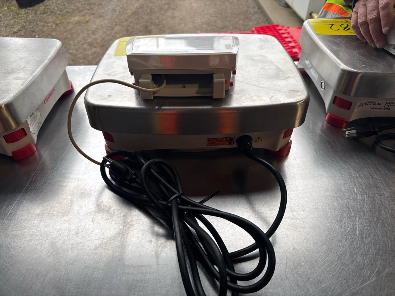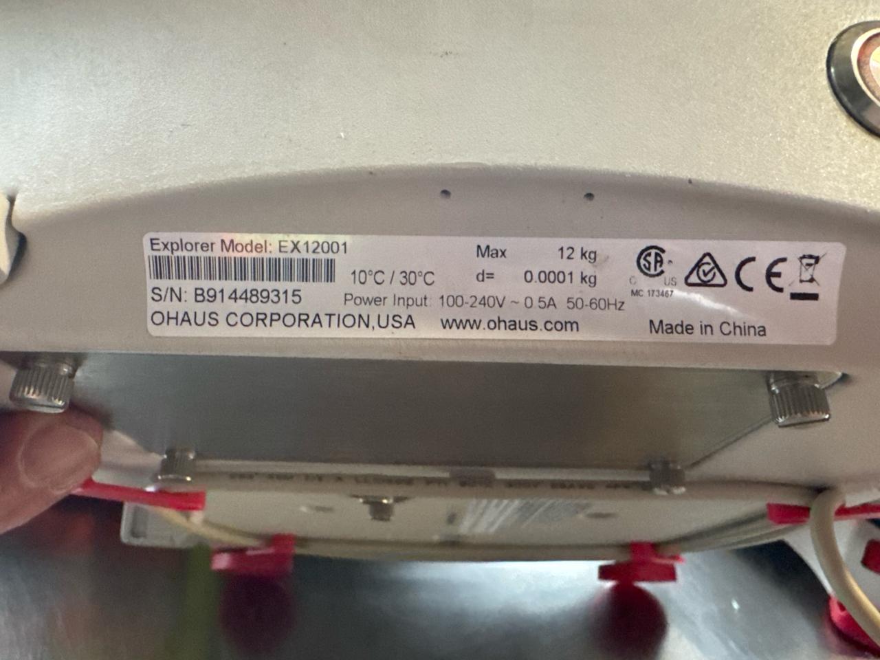 Ohaus Explorer digital bench scale, mod. EX12001, 12 kg - 0.0001 kg cap., 12 in. x 14.5 in. stainless steel platform [Loc. Sea Containers - Main Plant]