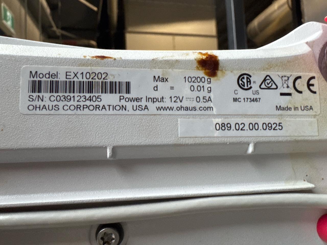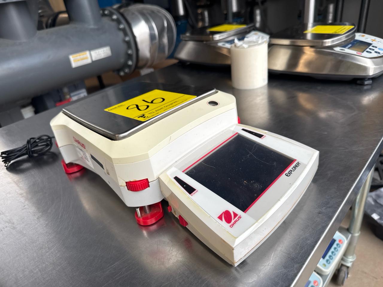 Ohaus Explorer digital bench scale, mod. EX10202, 10200 g - 0.01 kg cap., 7 in. x 8 in. stainless steel platform [Loc. Sea Containers - Main Plant]