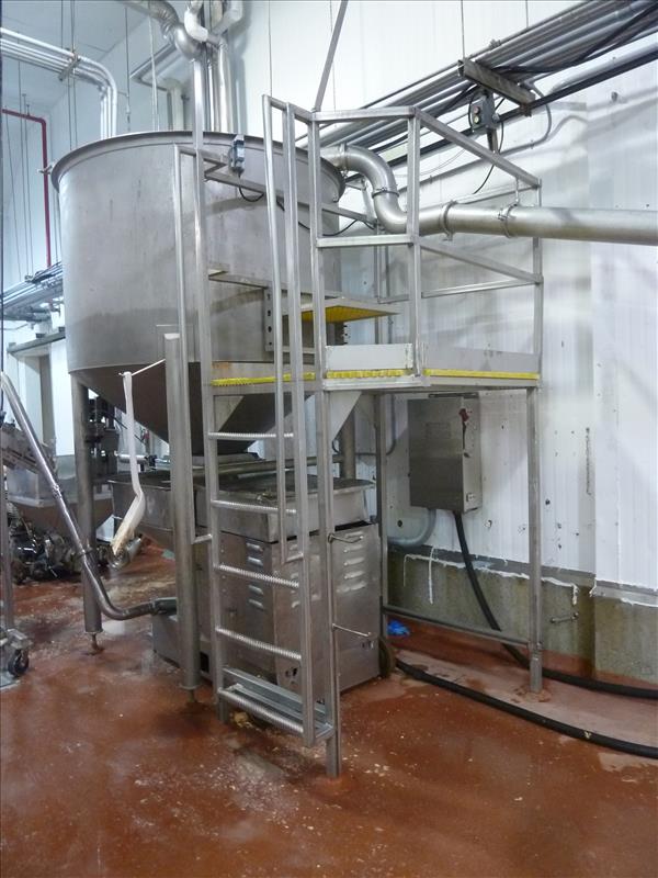 Hopper (no. 1 West), stainless steel, 3250 kg cap. c/w work platform