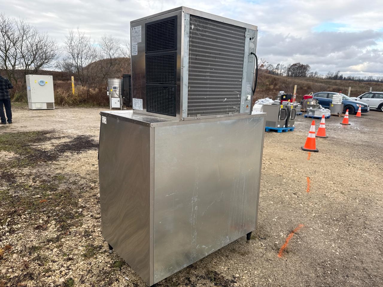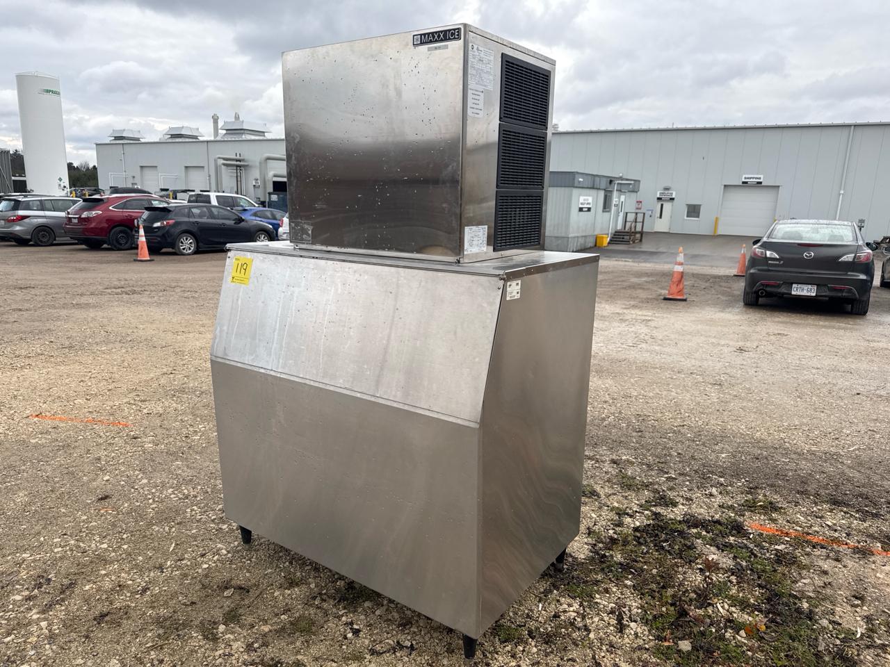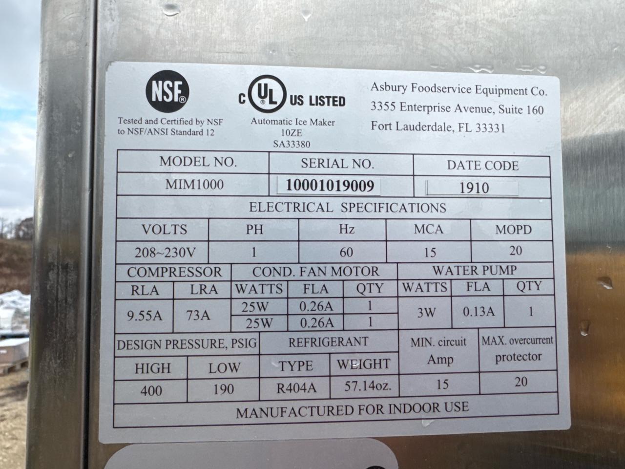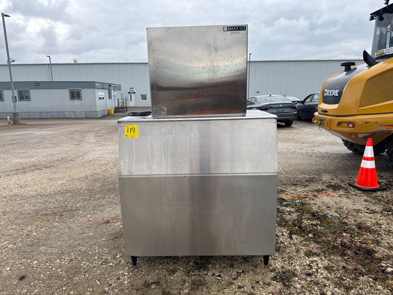 Ashbury ice machine, mod. MIM1000, ser. no. 1000101909 c/w KD Int'l ice bin, mod. BIN950, stainless steel [Loc. Sea Containers - Main Plant]