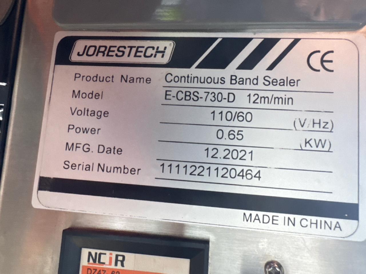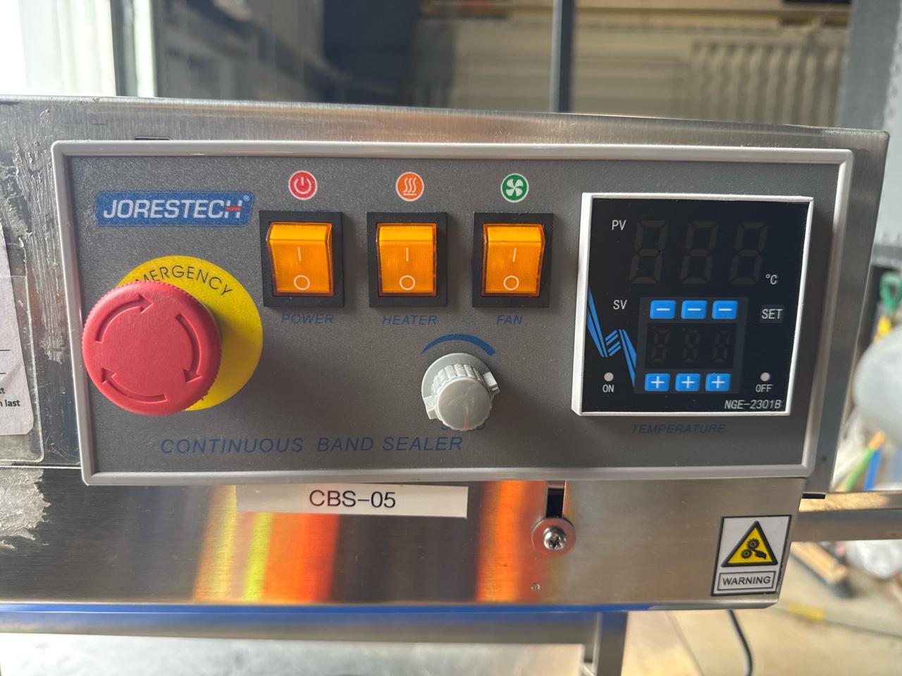 Jorestech continuous band sealer, mod. E-CBS-730D, ser. no. 111221120464, 12M/min. (2021) [Loc. Sea Containers - Main Plant]