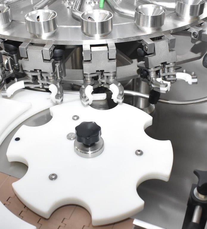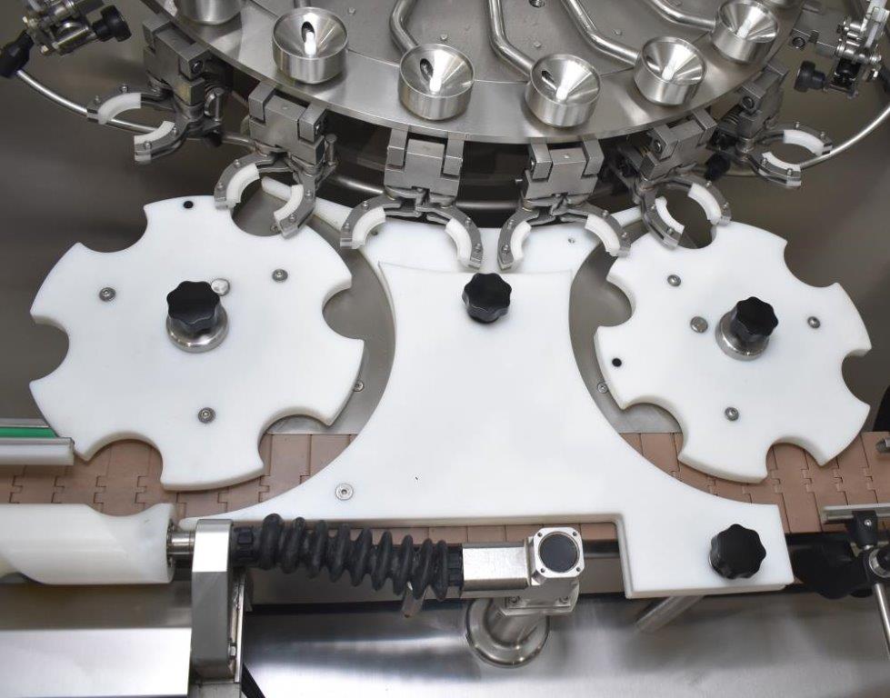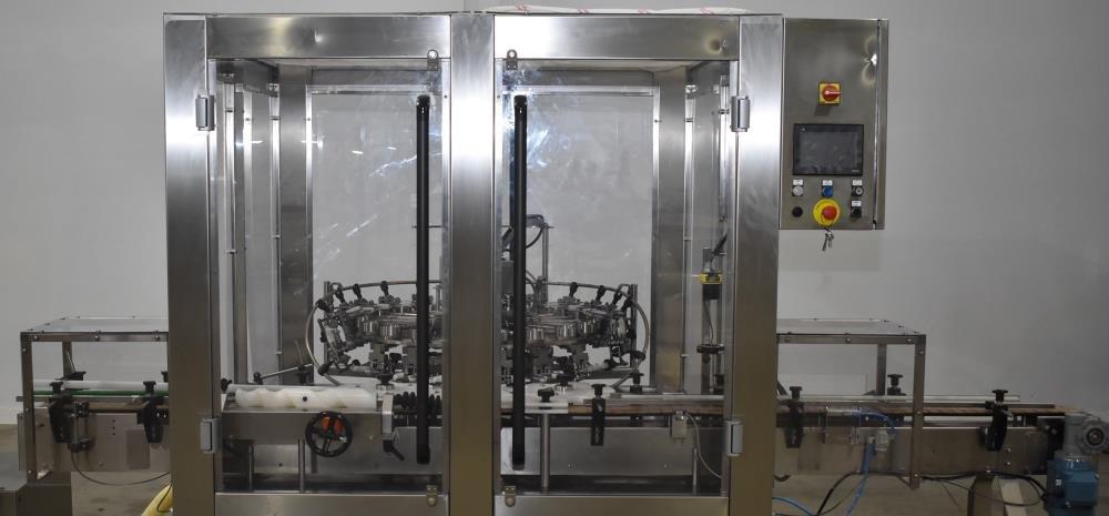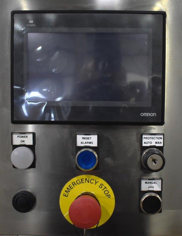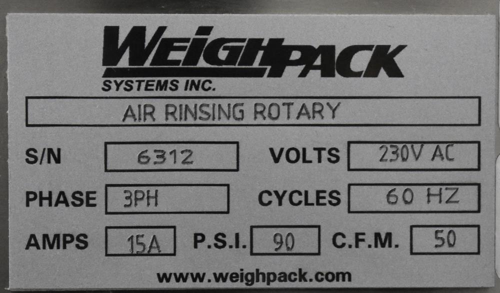 Weighpack Systems (Paxiom) Model SC20 rotary air rinser/bottle cleaner. ser. no. 6312 Suitable to rinse the internal of the glass bottles with air flush; complete of one setoff stars and feed-screw, electric box, conveyor belt with chain in stainless steel 304.Includes: Inspection device installed on the back side of the machine with manual rejection of the bottles by operator230v 3p 50hz. Unused [Located in Chicago, Illinois, USA]