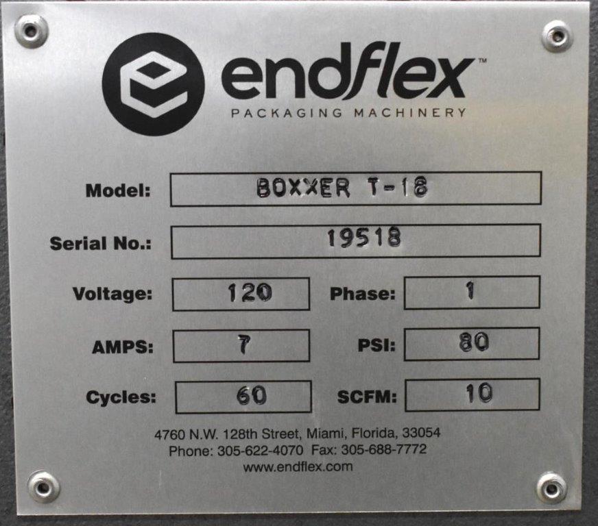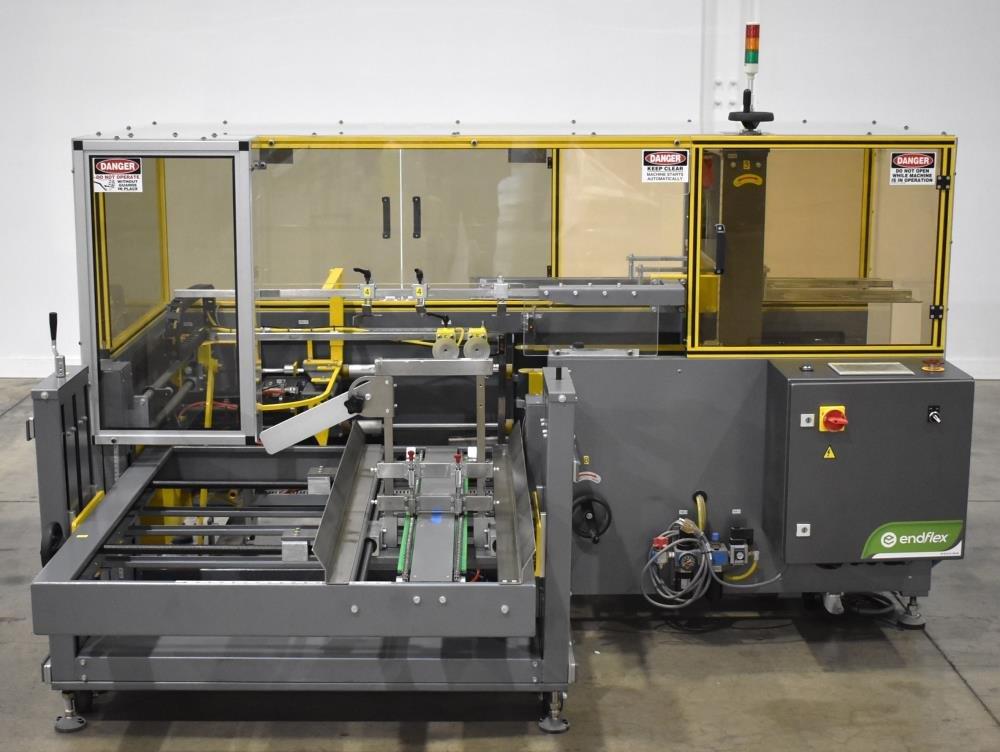 Endflex Boxxer T series Automatic Case Erector, Manual Loader and Automatic Case Taping System, Model T-18. ser. no. 19518 Capable of speeds up to 18 CPM (depending on application). Approximate case size range: 9.5\" to 20\" long x 7.5\" to 16\" wide x 5\" to 16\" diagonal. Automatic Case Erector and bottom taper, Boxx Pack Manual Packing system and EZ-Tape Case Sealer. Control panel with Weintek HMI, Omron Sysmac CP1L PLC. Serial# 18498. 1/60/120 Volt, 7 Amp. Unused [Located in Chicago, Illinois, USA]