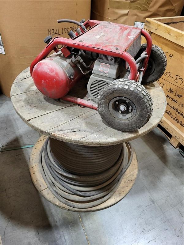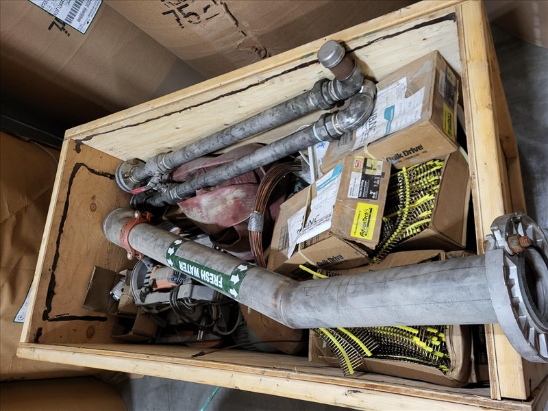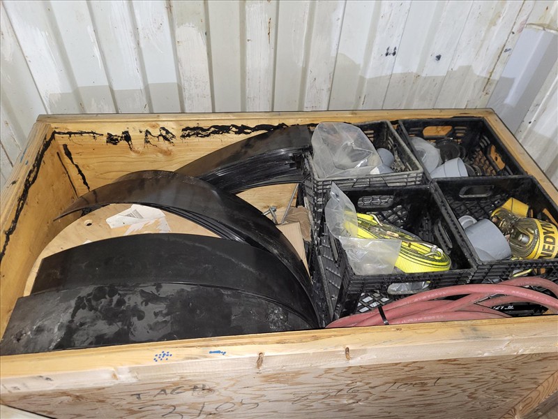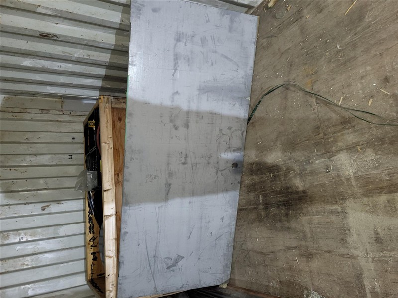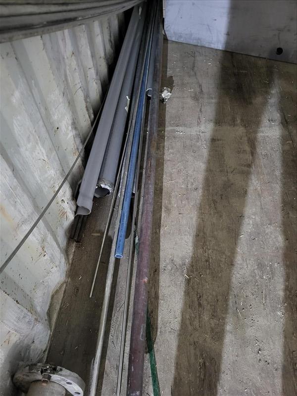 20 ft. Shipping Container w/ contents, incl: Old Stainless Pipe, (3) boxes of flooring screws, Table Saw, CPVC 3 inch 90s, 2 to 1.5 reducers, Sheet Stainless, Roll wire, 3 hp compressor, crate of wire pieces, cement forms, conduit pieces, total gross weight of sea container & contents: 5100 kg [Sea Container GVCU 2168372] [Mandatory Loading Fee: $100]