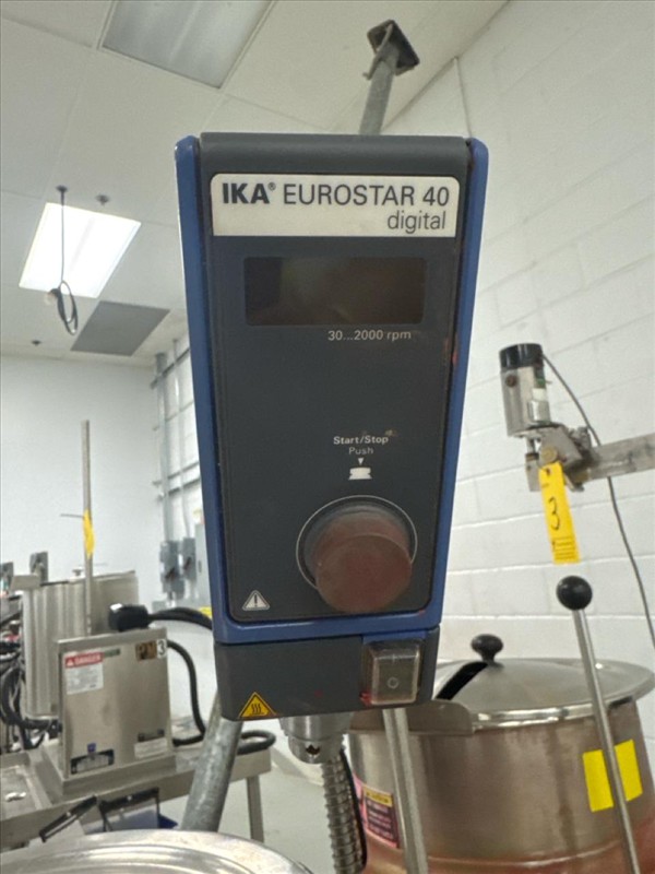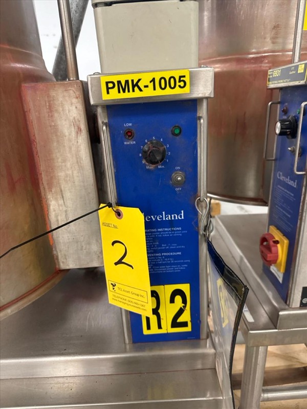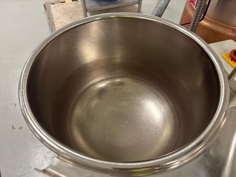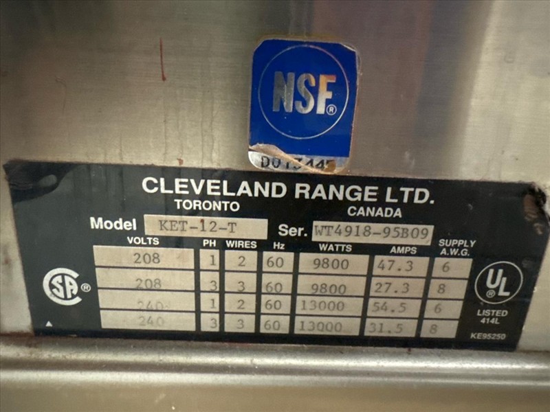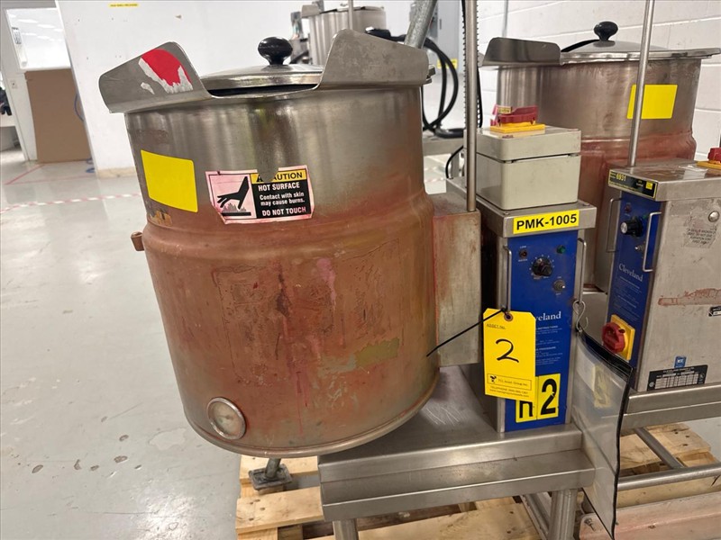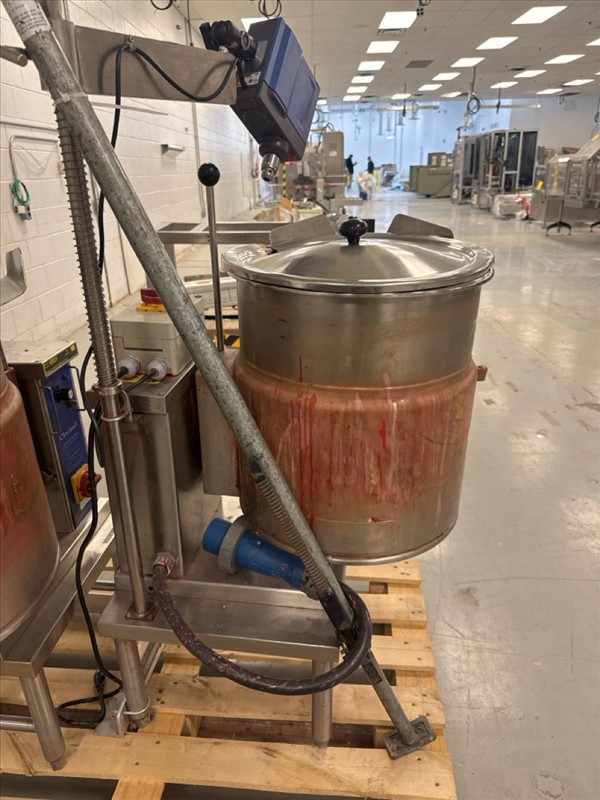 Cleveland Jacketed Electric Tilting Steam Kettle, mod. KET-12-T, ser. no. WT4918-95B09, kettle size approximately 17 in. W x 14 in. D, stainless steel c/w IKA Eurostar 40 digital overhead stirrer