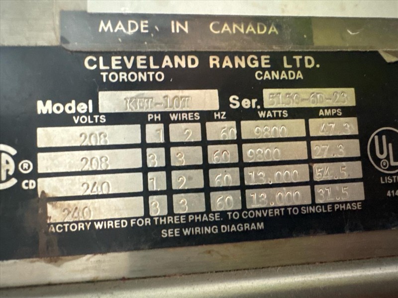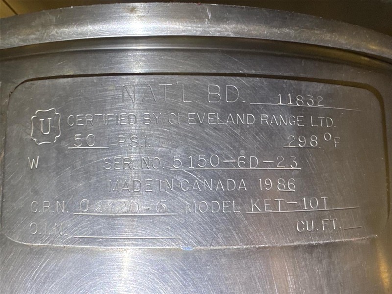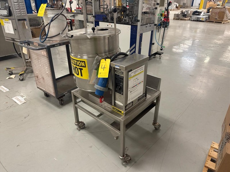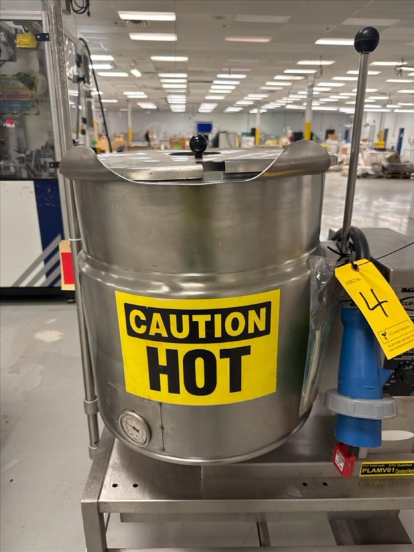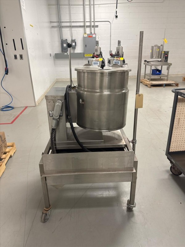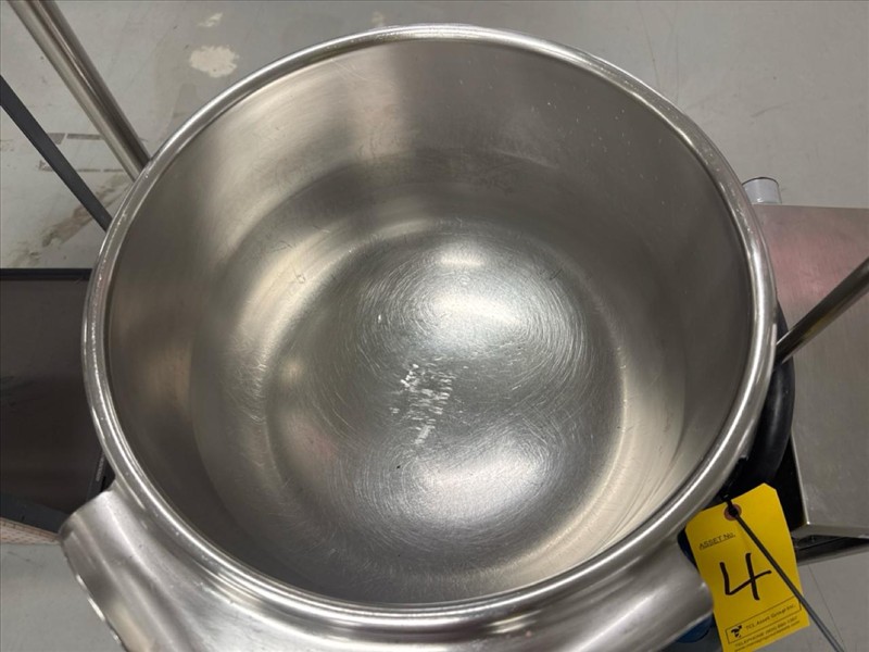 Cleveland Jacketed Steam Tilting Kettle, mod. KET-10T, ser. no. 5150-6D-23, kettle size Approximately 17 in. W x 13 in. D, stainless steel, on casters