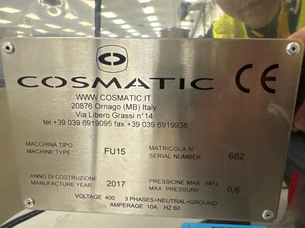Cosmatic Single Mobile Melting Tank, mod. FU15. ser. no. 682, stainless steel (2017) [Subject to Confirmation]