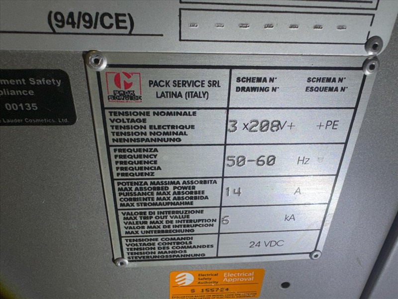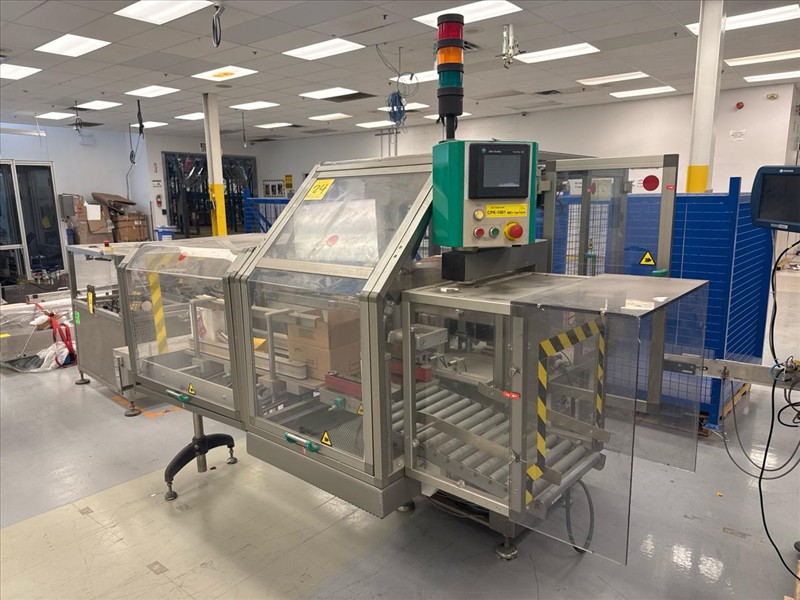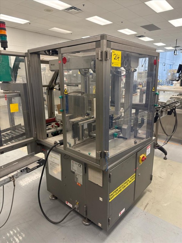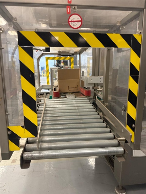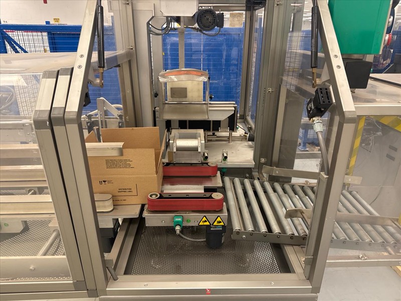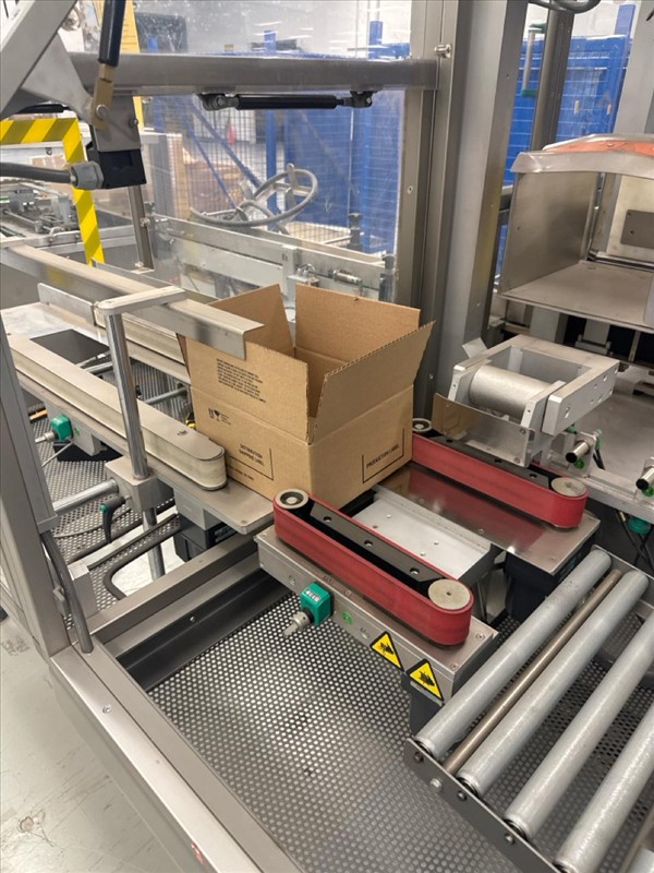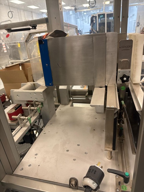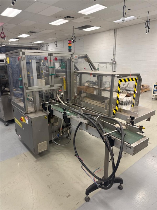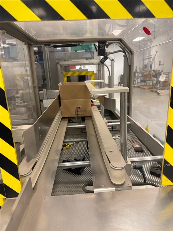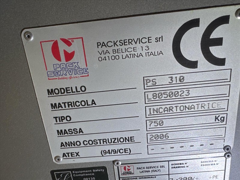 Packservice Case Packer, mod. PS 310, ser.no. L8050023, w/ conveyor approximately 9 in. W x 65 in. L, Inside box conveyor 9.5 in. W x 10 in. H