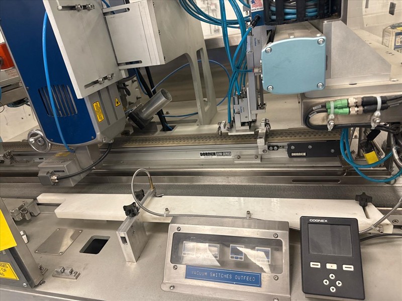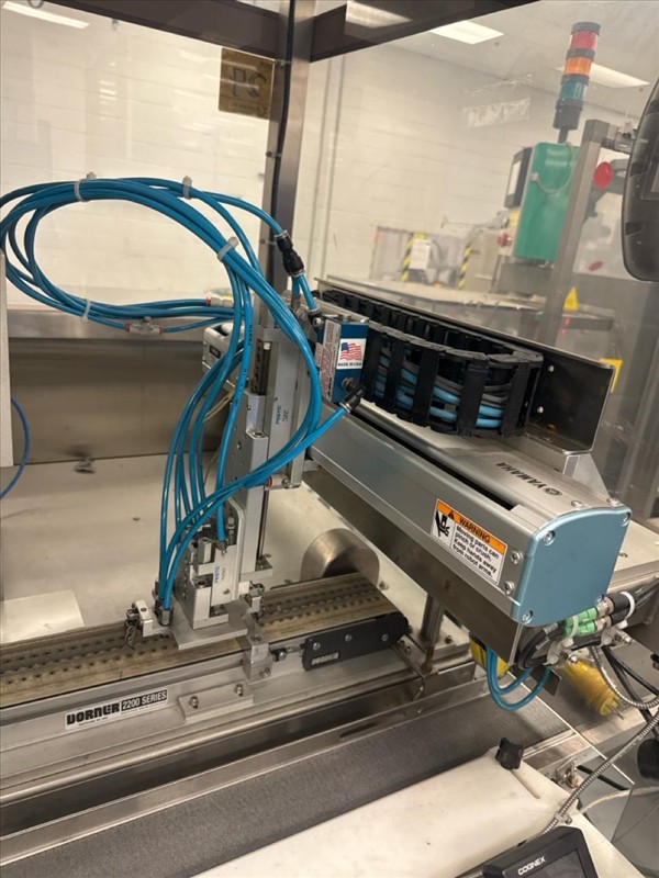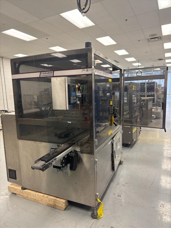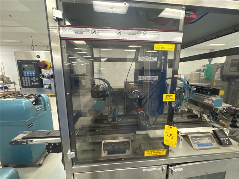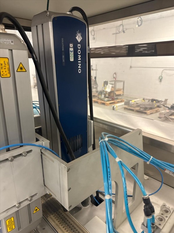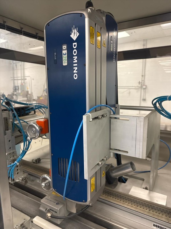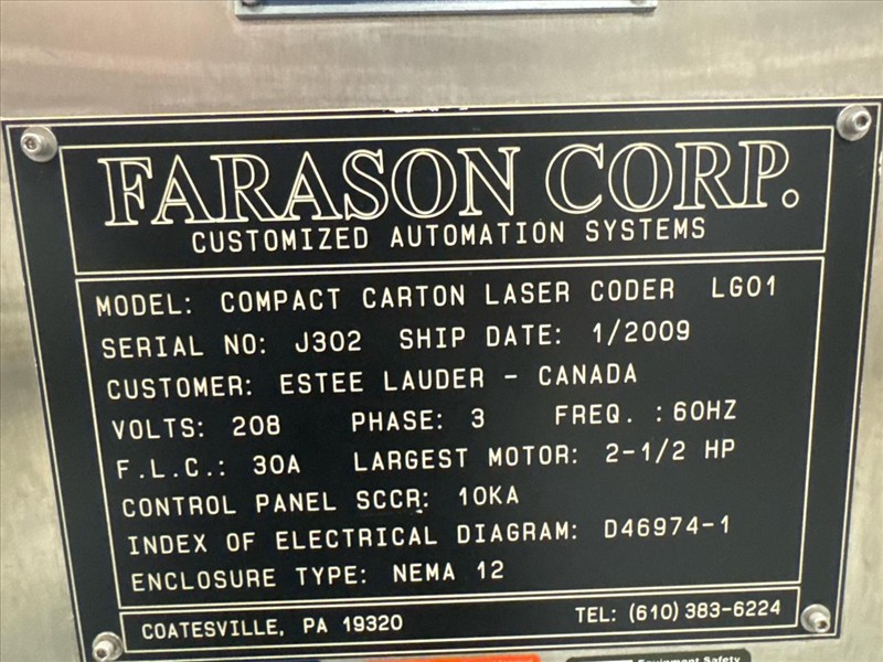Farson Compact Carton Laser Coder, mod. LG01, ser.no. J302, w/ (2) Domino Lasers, mod. D30i, conveyor 4 in. W x 107 in. L, Dorner conveyor approximately 4 in. W x 53.5 in. L