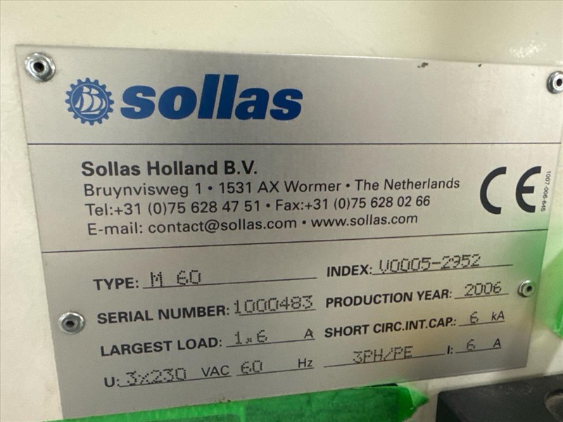 Sollas Overwrapping Machine, mod. M60, ser.no. 1000483, Conveyor approximately 8 in. W x 87 in. L