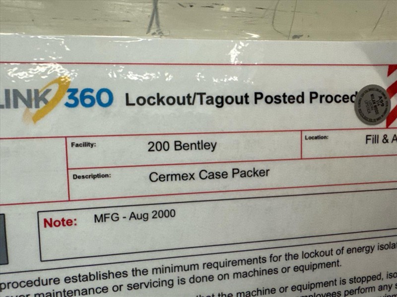 Cermex Case Packer, mod. E72240, ser. no. 30901