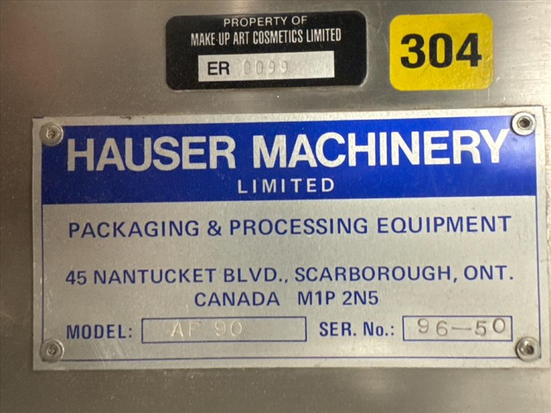 Hauser Machinery Stainless Steel Auger Filler, mod. AF90, ser.no. 96-50, stainless steel