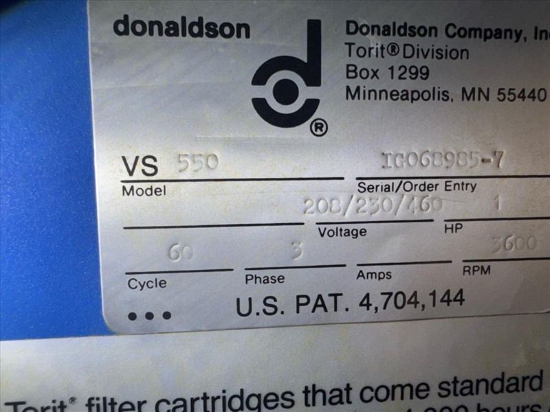 Torit Dust Collector, mod. VS 550, ser.no. IG068985-7, on casters