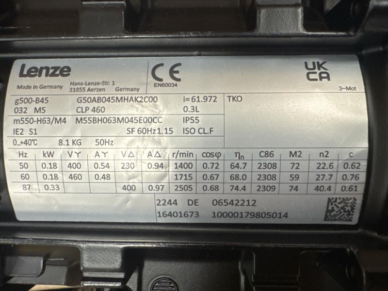 (4) Lenze Bevel Geared Motors, mod. G500, 0.33 kW [Subject to Confirmation]