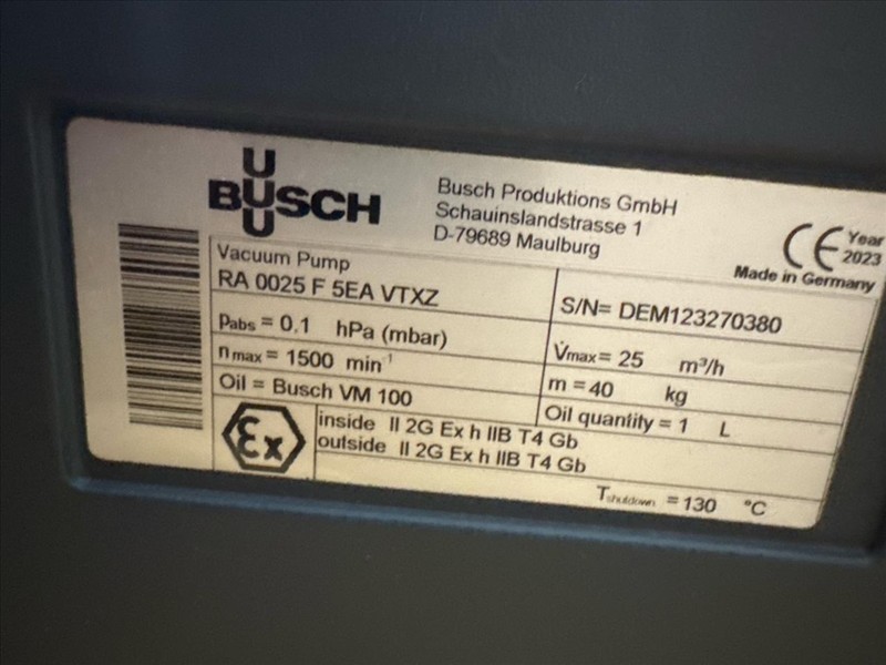 NEW Busch Vacuum pump, mod. RA 0025 F 5EA VTXZ, ser.no. DEM123270380 [Subject to Confirmation]