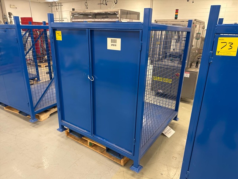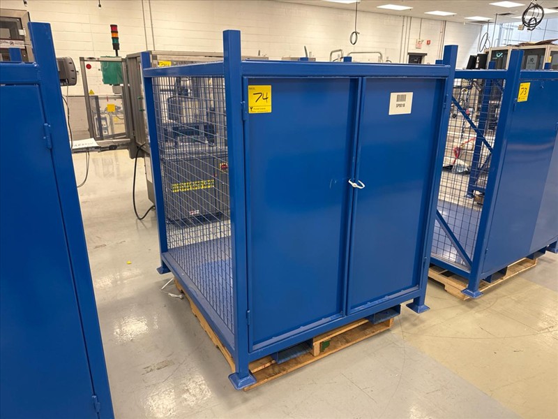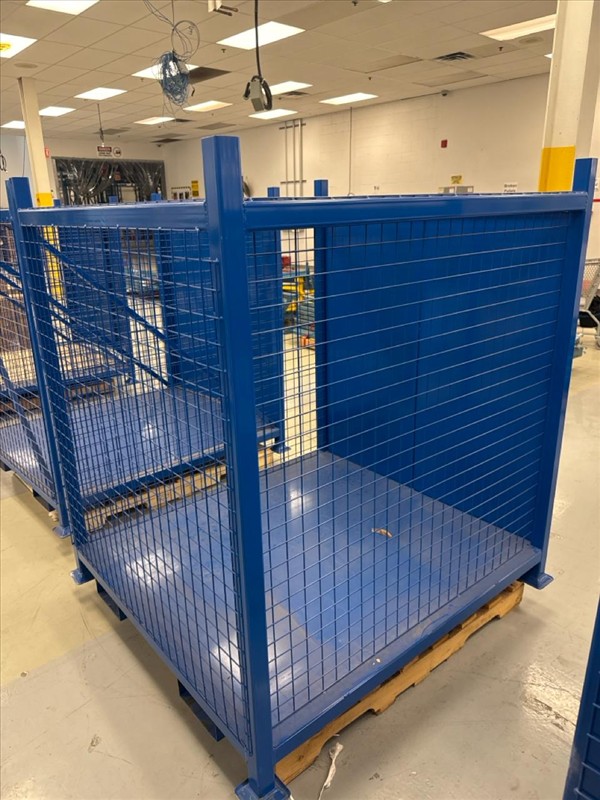 Blue storage cage, approximately 50 in. W x 54 in. D x 59.5 in H. w/ fork slots