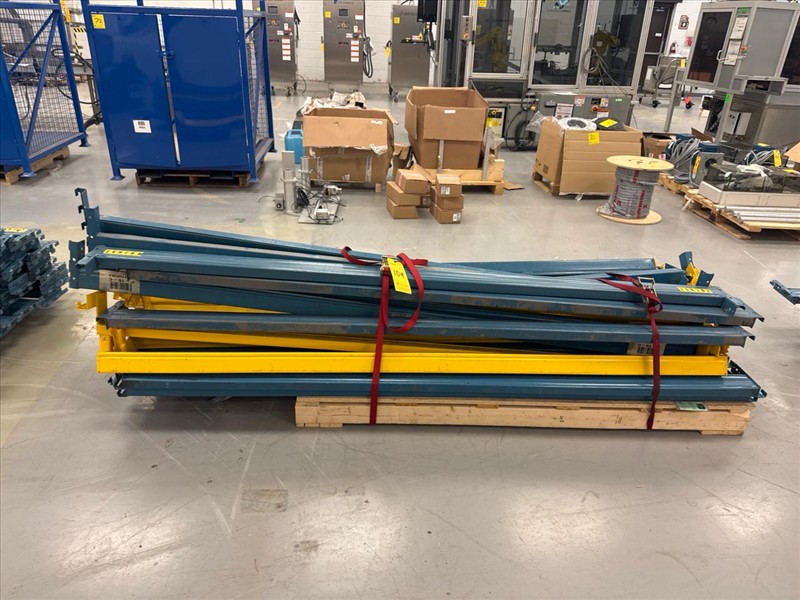 (10) Yellow Pallet racking beams approximately 2 in. W x 8 ft L and (20) Blue racking beams approximately 2 in. W x 8 ft L