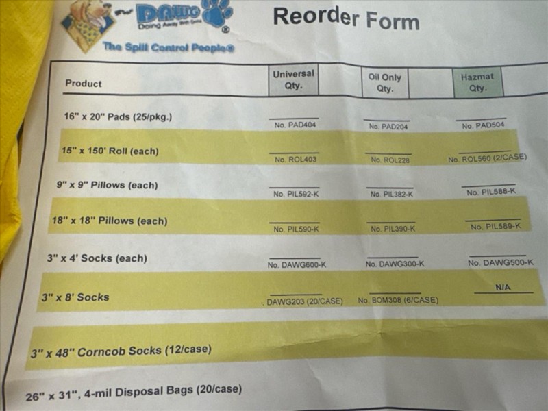 Drum Spill Kit, (2) Bags of Dri-Zorb