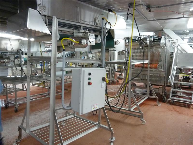(Line 1) Everclean blue conveyor, 2-sec. stainless steel on casters