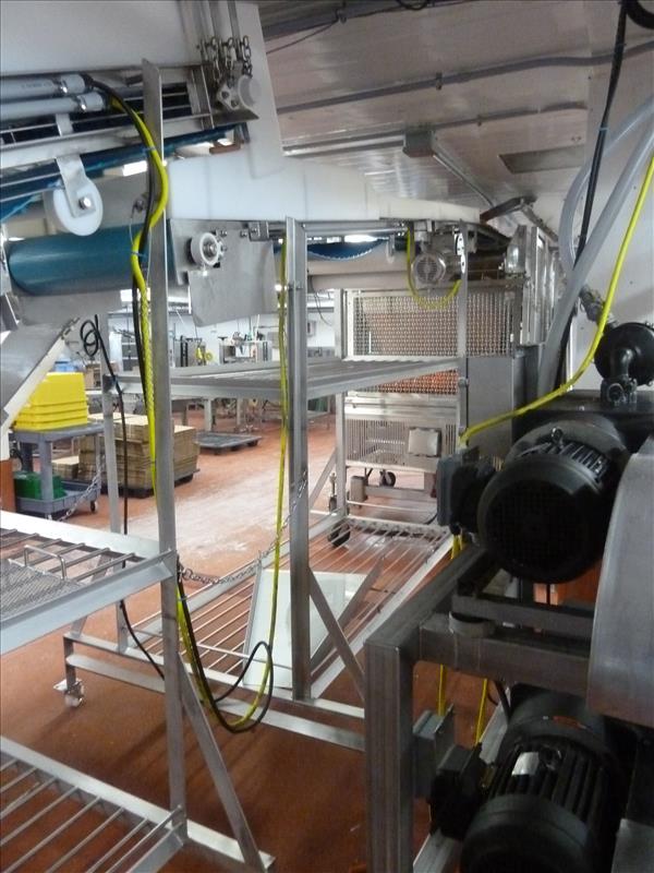 (Line 2) Everclean blue conveyor, 3-sec., stainless steel on casters