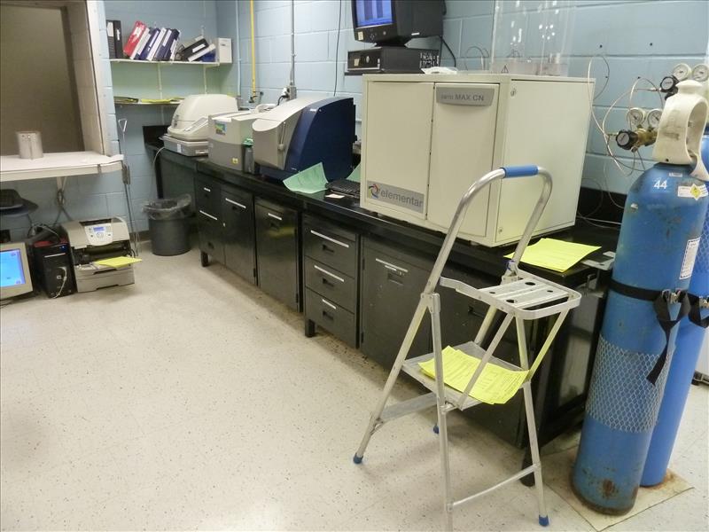 Laboratory cabinets, slate top, approx. 29 in. x 14 ft. & 29 in. x 25 ft. & island