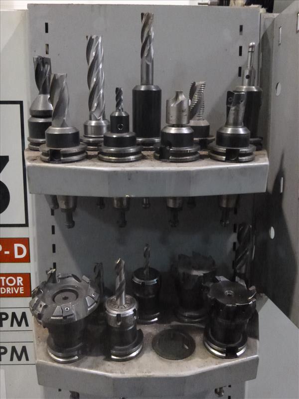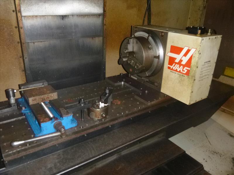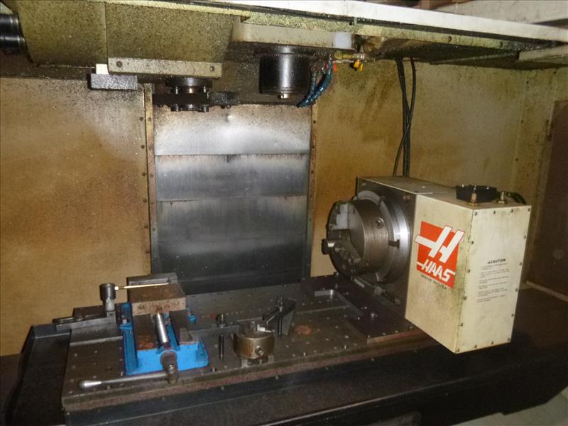 2003 Haas CNC vertical machining centre model VF3D ser. no. 31267 c/w rotary table 24-tool ATC 10000 rpm. spindle 1000 IPM. 20 h.p. dual drive CAT-40 tooling