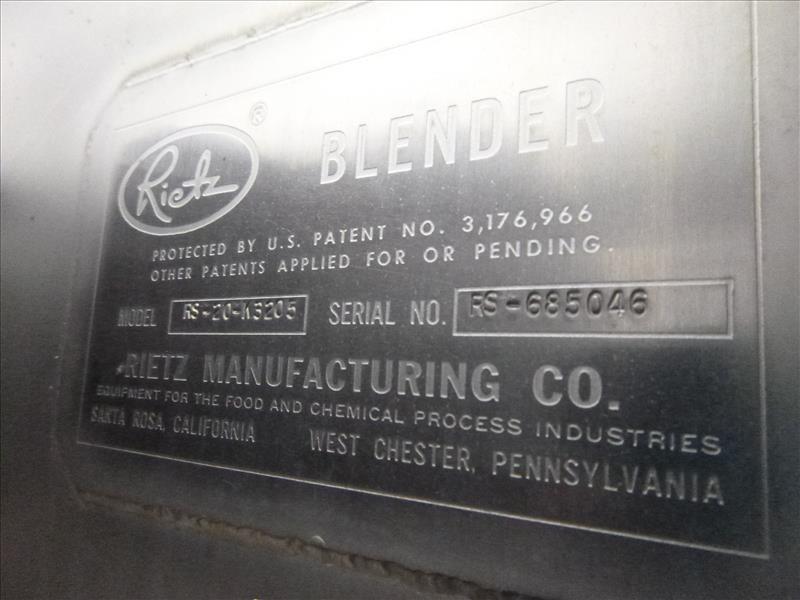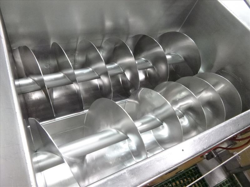 (Salami & Pepperoni Mixing) Rietz s/s dual shaft rotary screw blender model RS-20-K3205 ser. no. RS-685046 (2) 7.5 h.p. motors on load cells c/w Rice Lake weight indicator model 920I-5A & platform 32 in. deep x 60 in. x 40 in.