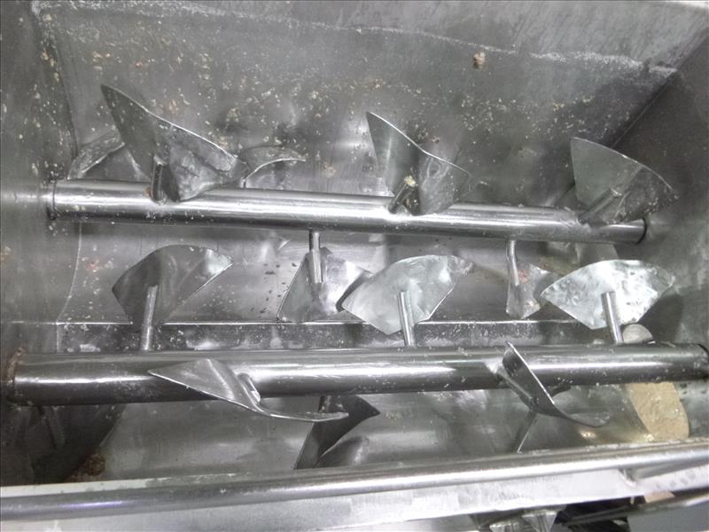 (Ham Batching) Reiser s/s dual shaft paddle mixer on load cells 28 in. deep x 35 in. x 56 in. c/w Weigh-Tronix weight indicator model WI125 & s/s operator platform