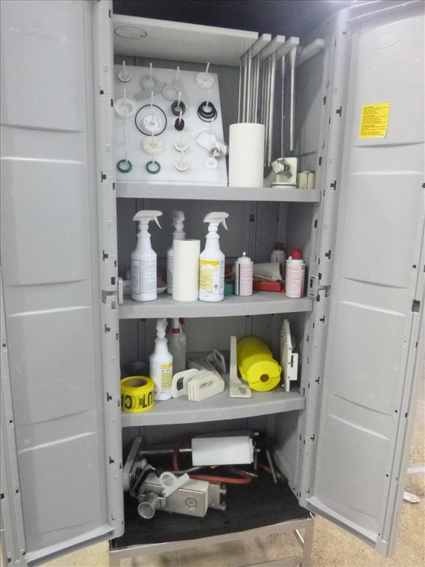 (Fresh/Frozen Sausage 2) Handtmann s/s inline grinder model GD93-1 ser. no. 042 (1997) c/w parts cabinet