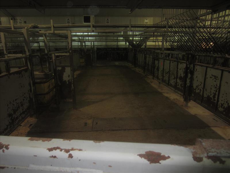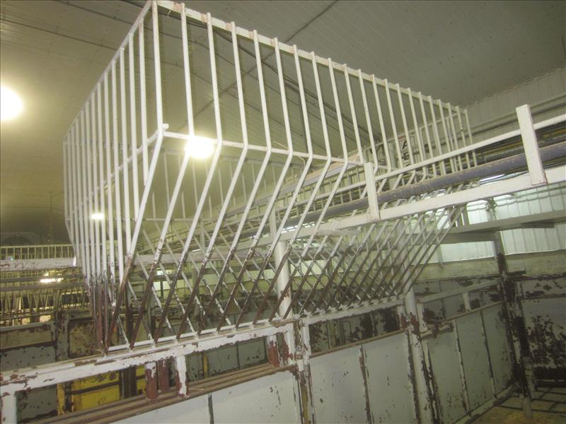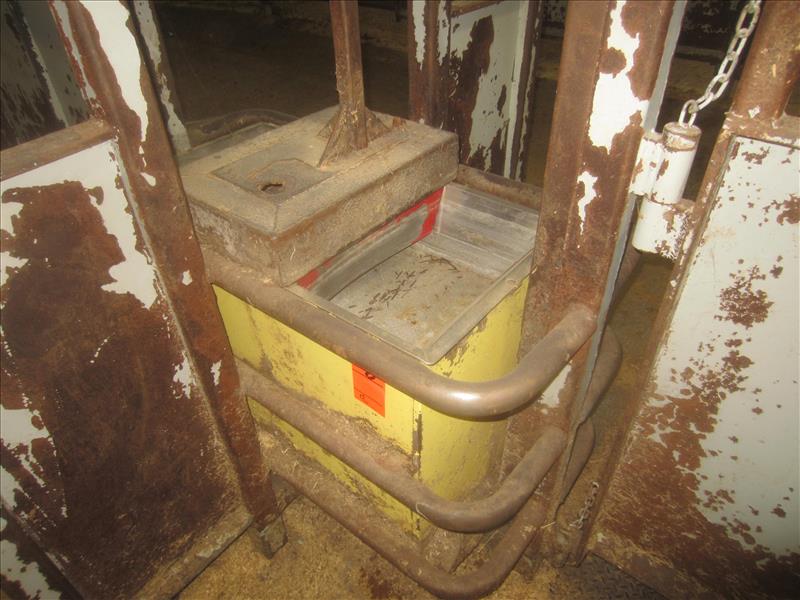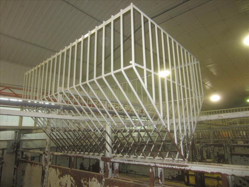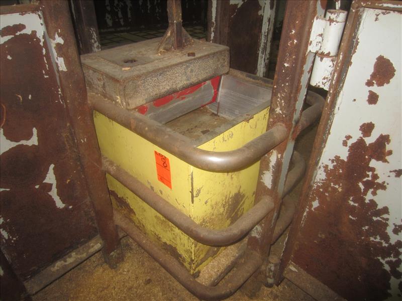 Cattle Pen 28' W X 48' L w/(2) overhead hay bins, (2) Ritchie waterers, (2) end gates & (2) center gates, includes all associated catwalks