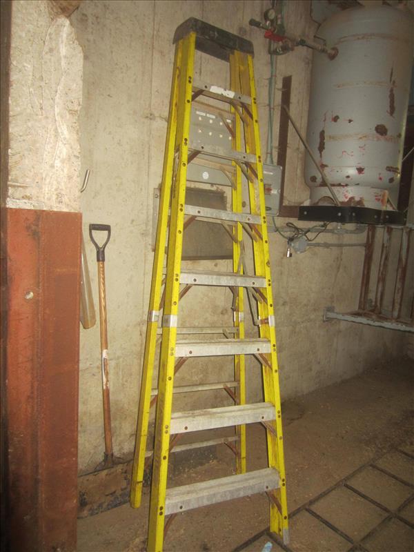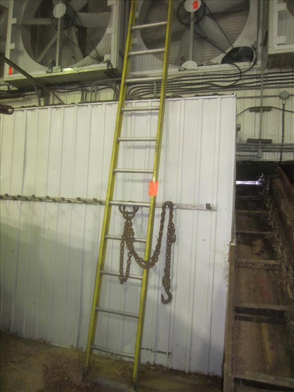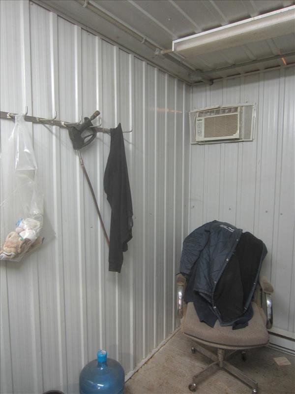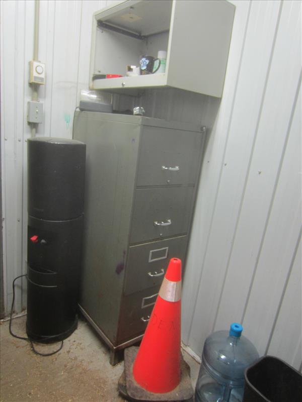 Contents of Office, Cattle Prods, Safety Cones, Monitor, Desk, Water Cooler, File Cabinet, Fellini Air Conditioner, (4) Lockers, Freezer Coats, Ladder, Lot of Chain w/hook, S.S. Handwash Sink, Towel Dispenser, S.S. Rack, Cart, 8' Fiberglass Step Ladder & 12' Ladder